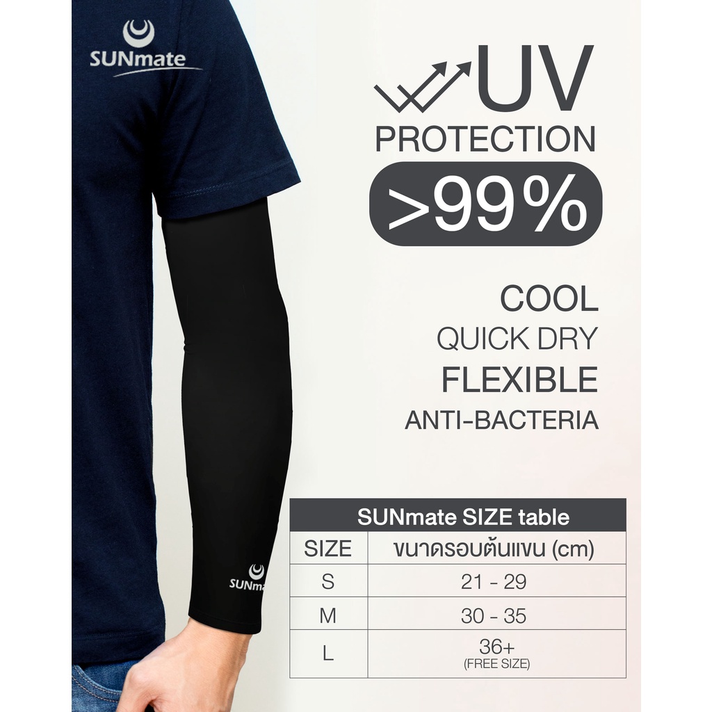 SUNmate ปลอกแขนกันแดด กันยูวี 99.8% มากกว่า 10 สี ผิวไม่คล้ำแม้อยู่กลางแดดกว่า 8 ชม. ใส่สบายแห้งเร็ว