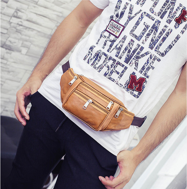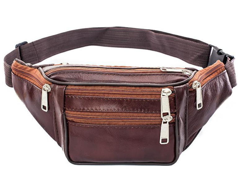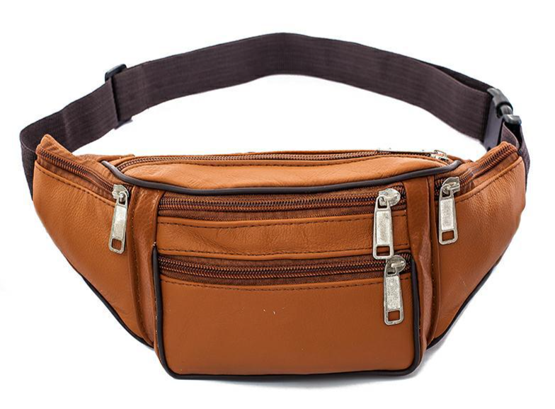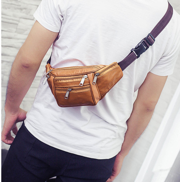 (w121) กระเป๋าคาดเอวพ่อค้า งานหนัง มีซิปเยอะ6ช่อง bagdance