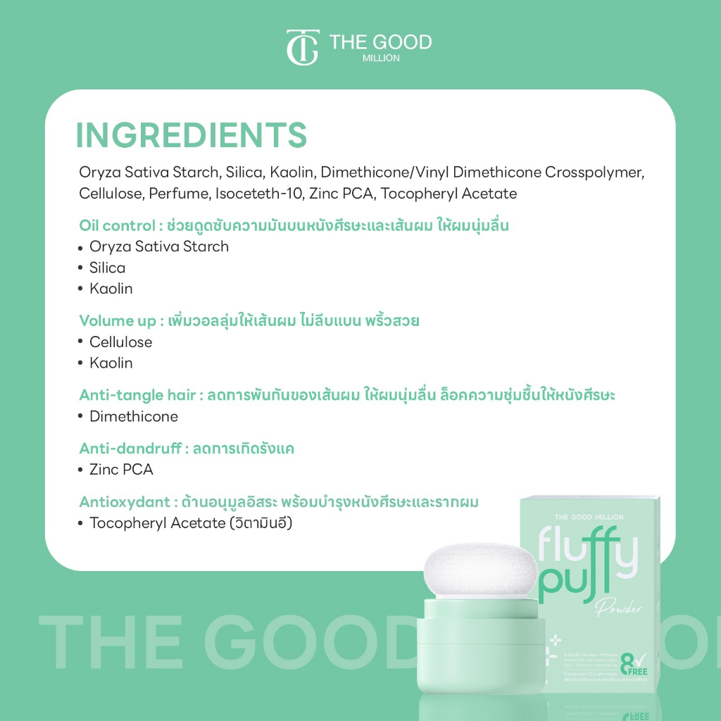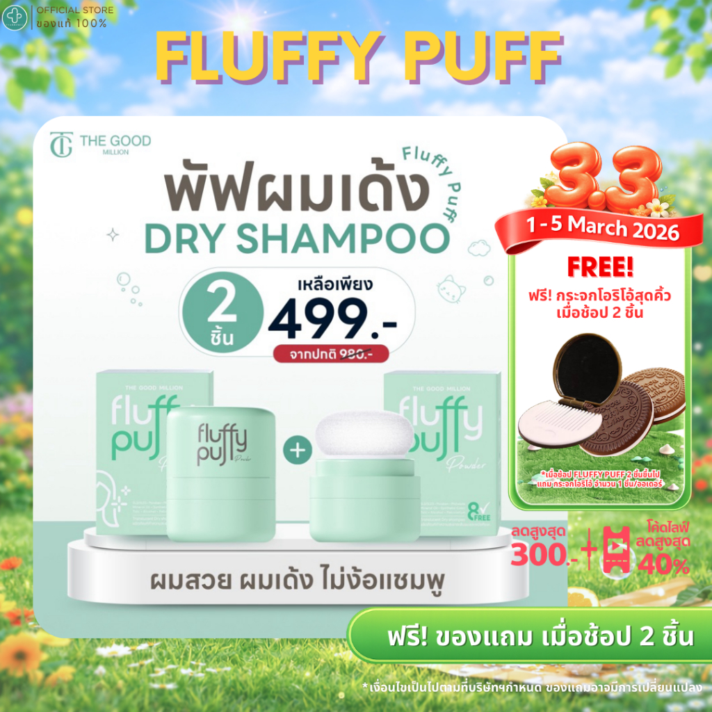 [ขายดี! มีของแถม] The good million fluffy puff 5 กรัม พั ฟผมเด้ง ดรายแชมพู ลดปัญหาผมมัน ดรายแชมพู