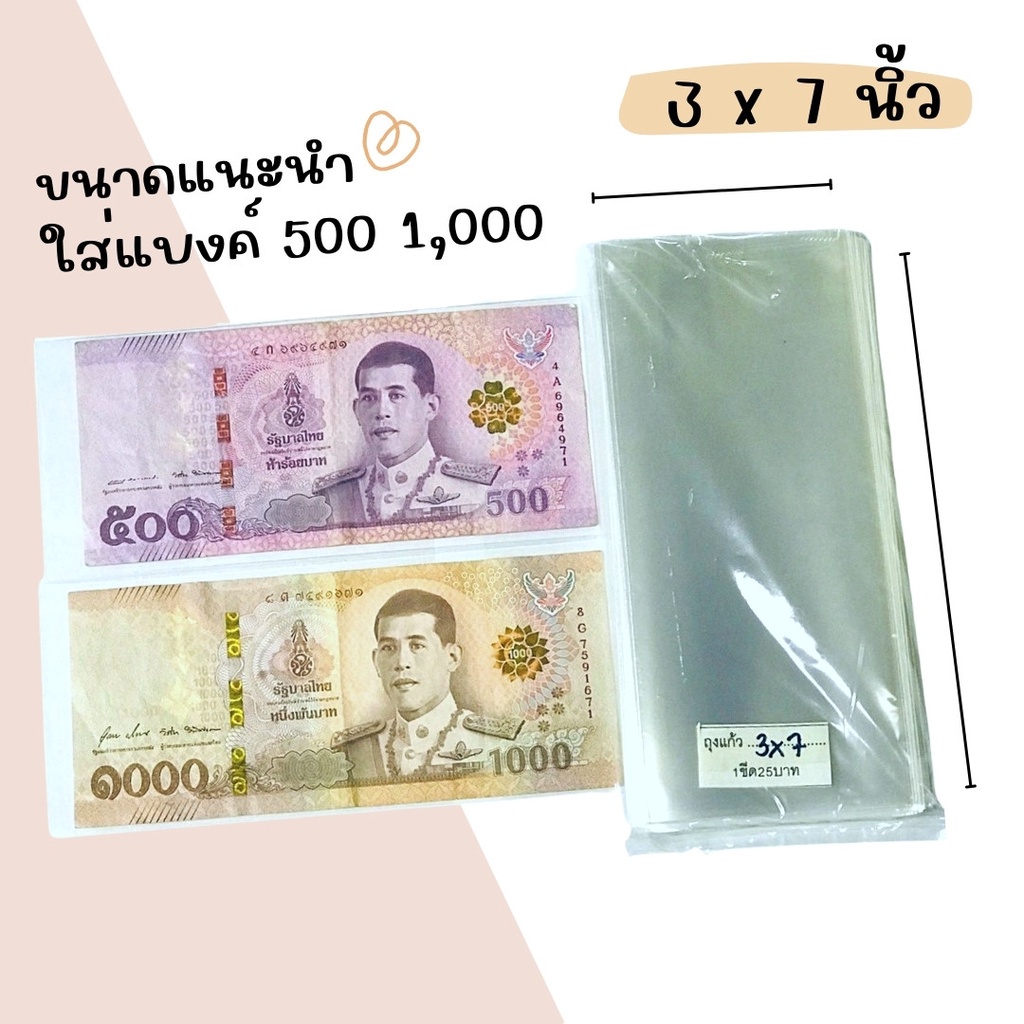 ถุงแก้ว OPP 50 ไมครอน มีหลายขนาด 1.5"-7" ซองใส ถุงแก้วใสOPP ซองใส่แบงค์ ช่อแบงค์ DIY