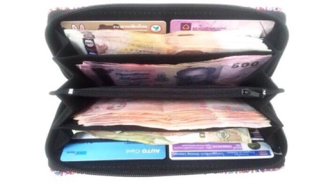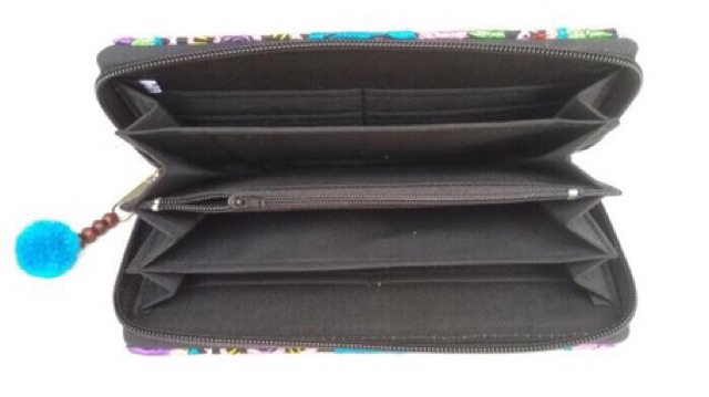 กระเป๋าสตางค์ผ้าใบยาว ปักลายดอกทานตะวันโทนชม