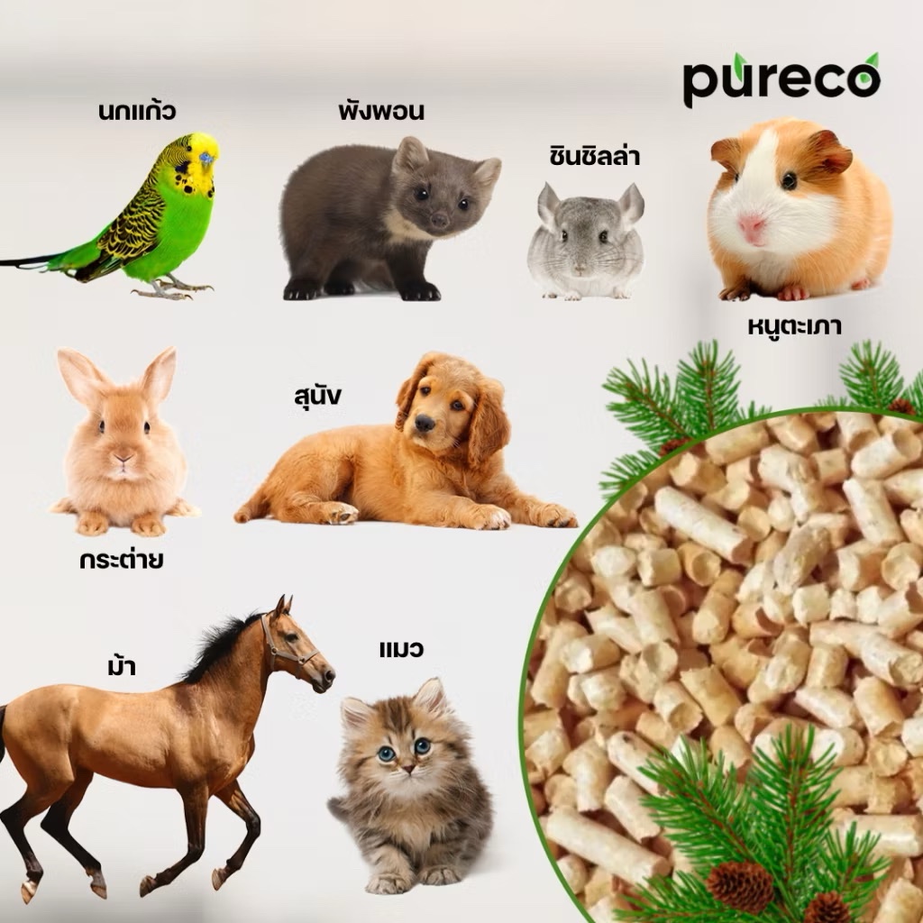 ทรายไม้สนPurecoสามารถใช้กับกระต่ายหนูและสัตว์Exotic ทุกชนิดชนาด2kgและ9kg