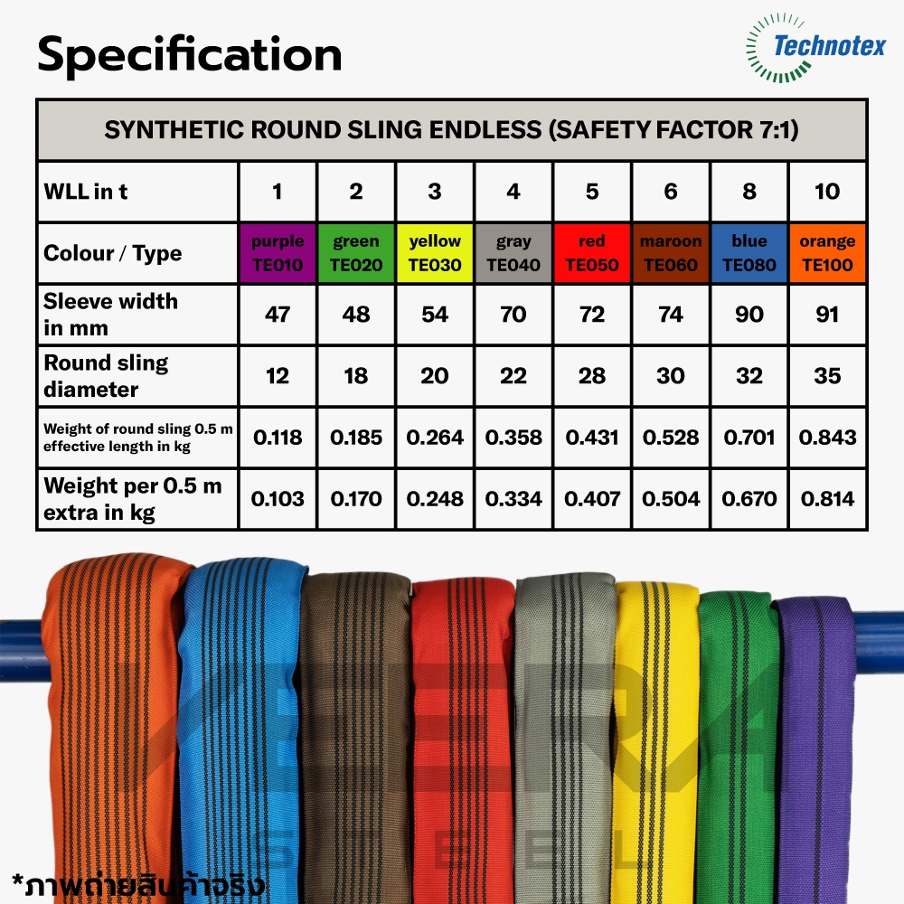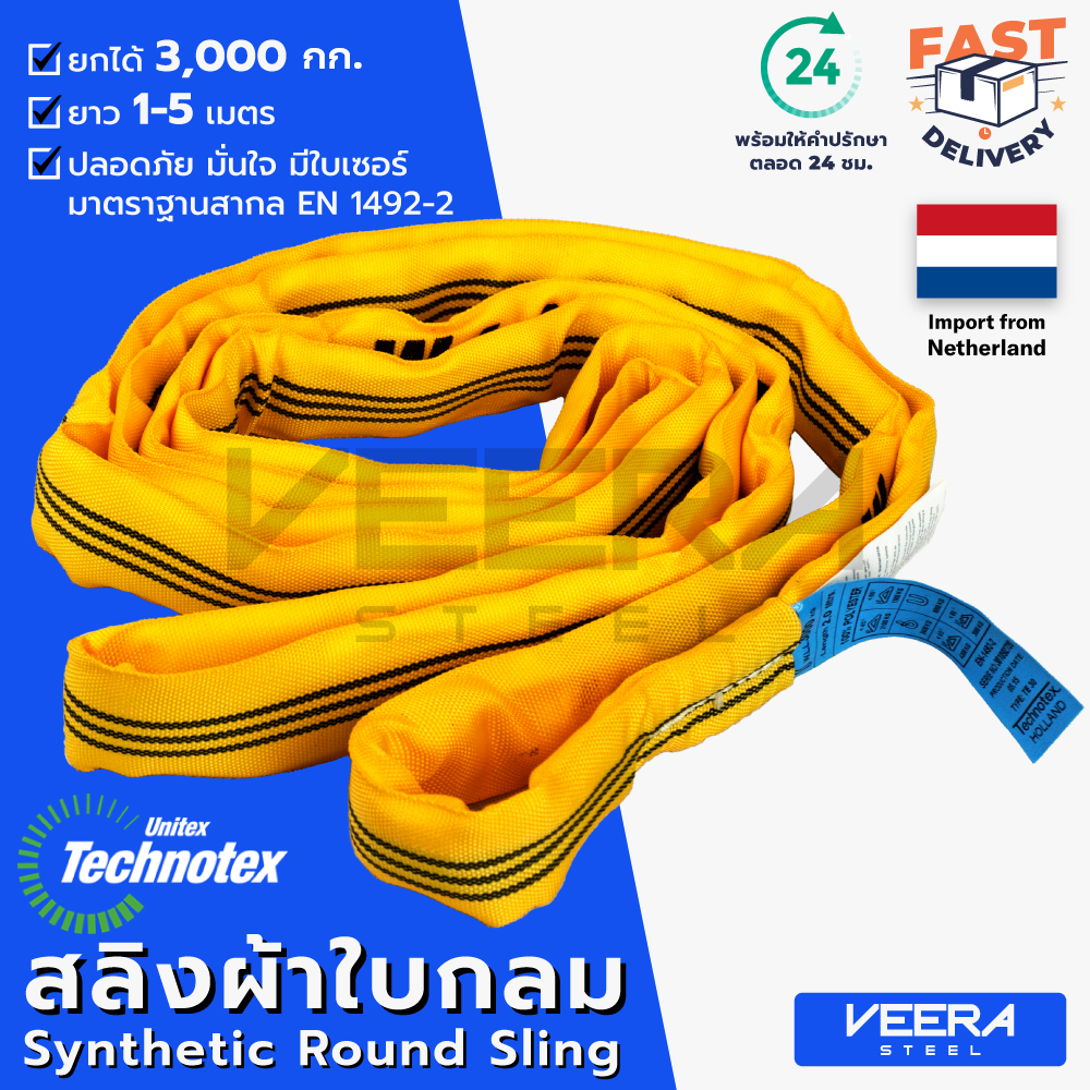 สลิงผ้าใบกลม Technotex รับน้ำหนักได้ 3 ตัน ความยาว 1–5 เมตร มาตรฐานสากล Safety Factor 7:1 – Veerasteel