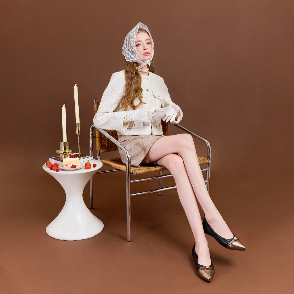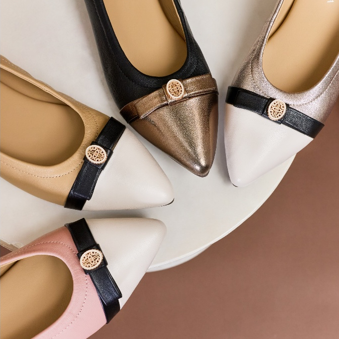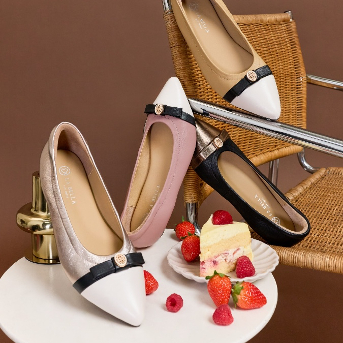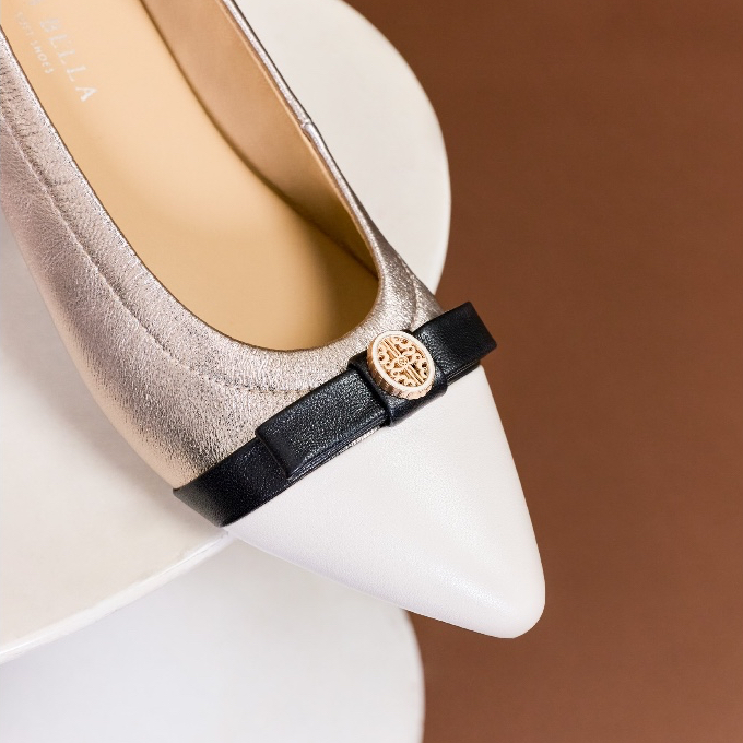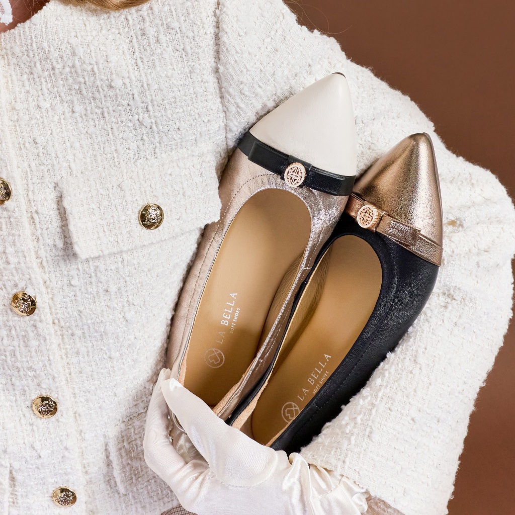 LA BELLA รองเท้าคัชชูหัวแหลมหนังแกะ รุ่น LB QUEEN 2 TONE PETITE BOW 4 สี