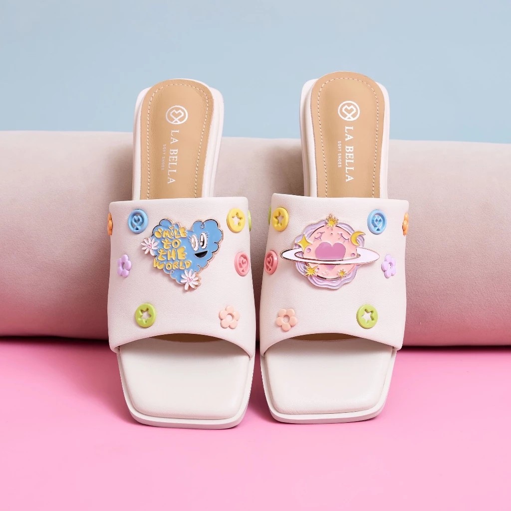 LA BELLA รองเท้าส้นสูงหนังแกะ รุ่น PAINTER BELL SANDALS 3 สี