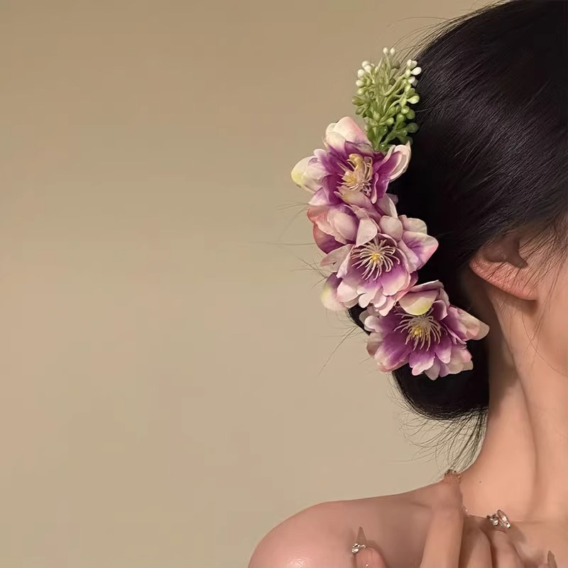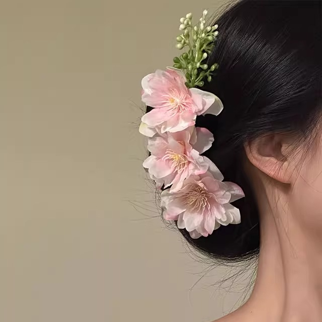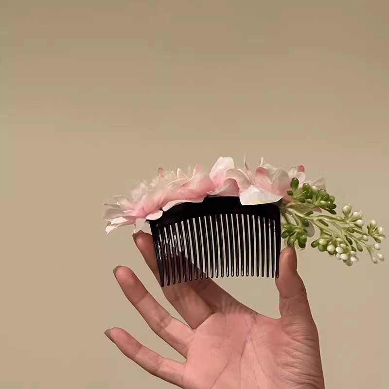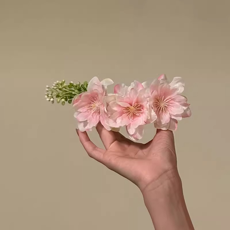 ฤดูร้อนสีชมพูหวานดอกไม้หวีผมใหม่สไตล์จีนผมแทรกหวีผ้าโพกศีรษะ