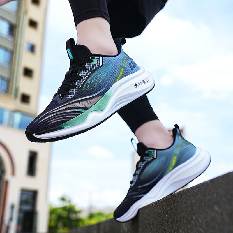 รองเท้ากีฬาชาย รองเท้าวิ่งลำลอง รองเท้าพื้นนุ่ม เรียบง่ายและมีสไตล์สำหรับออกกำลังกายกลางแจ้ง