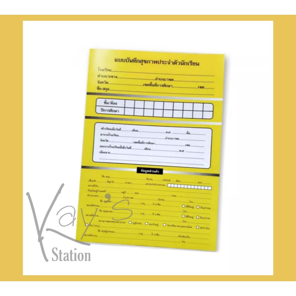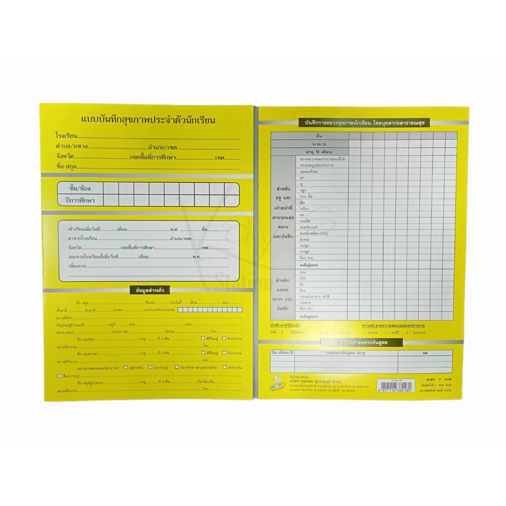 แบบบันทึกสุขภาพประจำตัวนักเรียน เล่มสีเหลือง (ขายเป็นเล่ม)