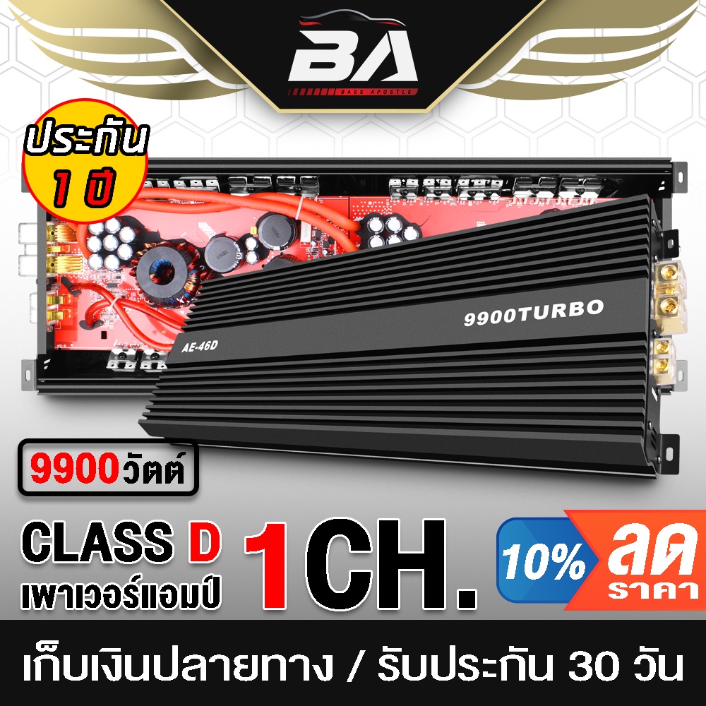 BA SOUND เพาเวอร์แอมป์ CLASS D 2CH. 9900วัตต์ AE-46D 【ขับลำโพงซับ 18/15นิ้ว แม่เหล็ก 2-3 ชั้น 1คู่】 เพาเวอร์ เพาเวอร์ซับ