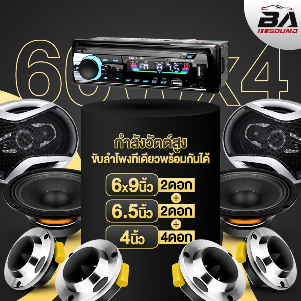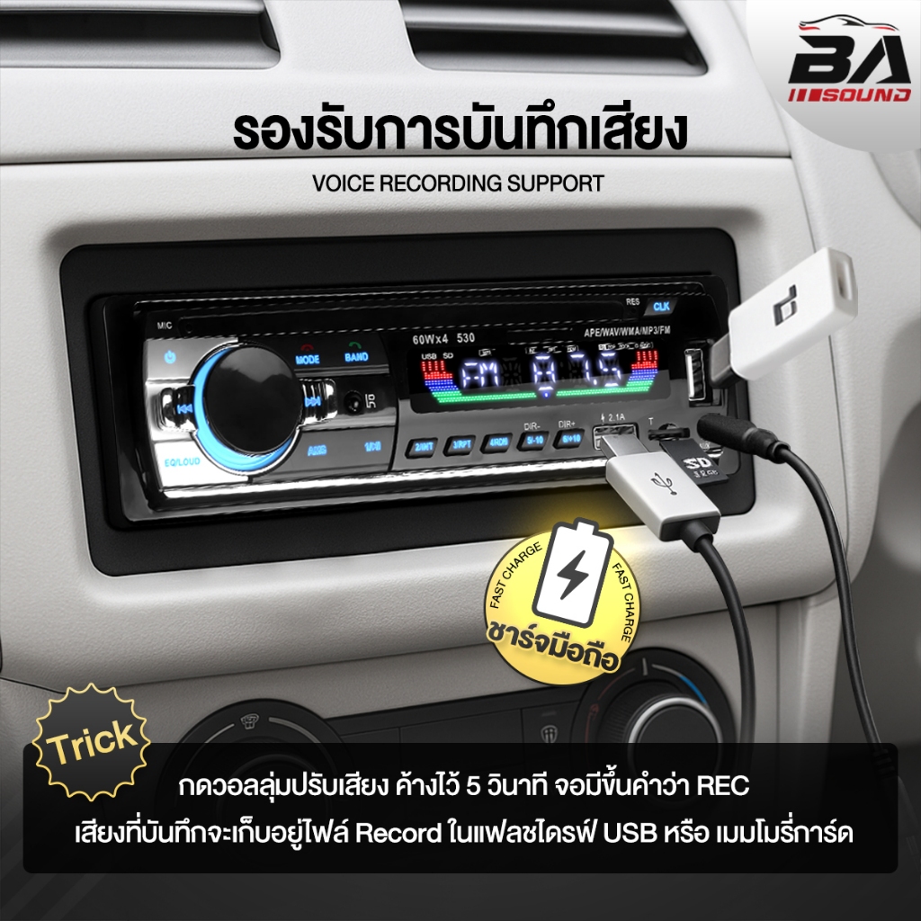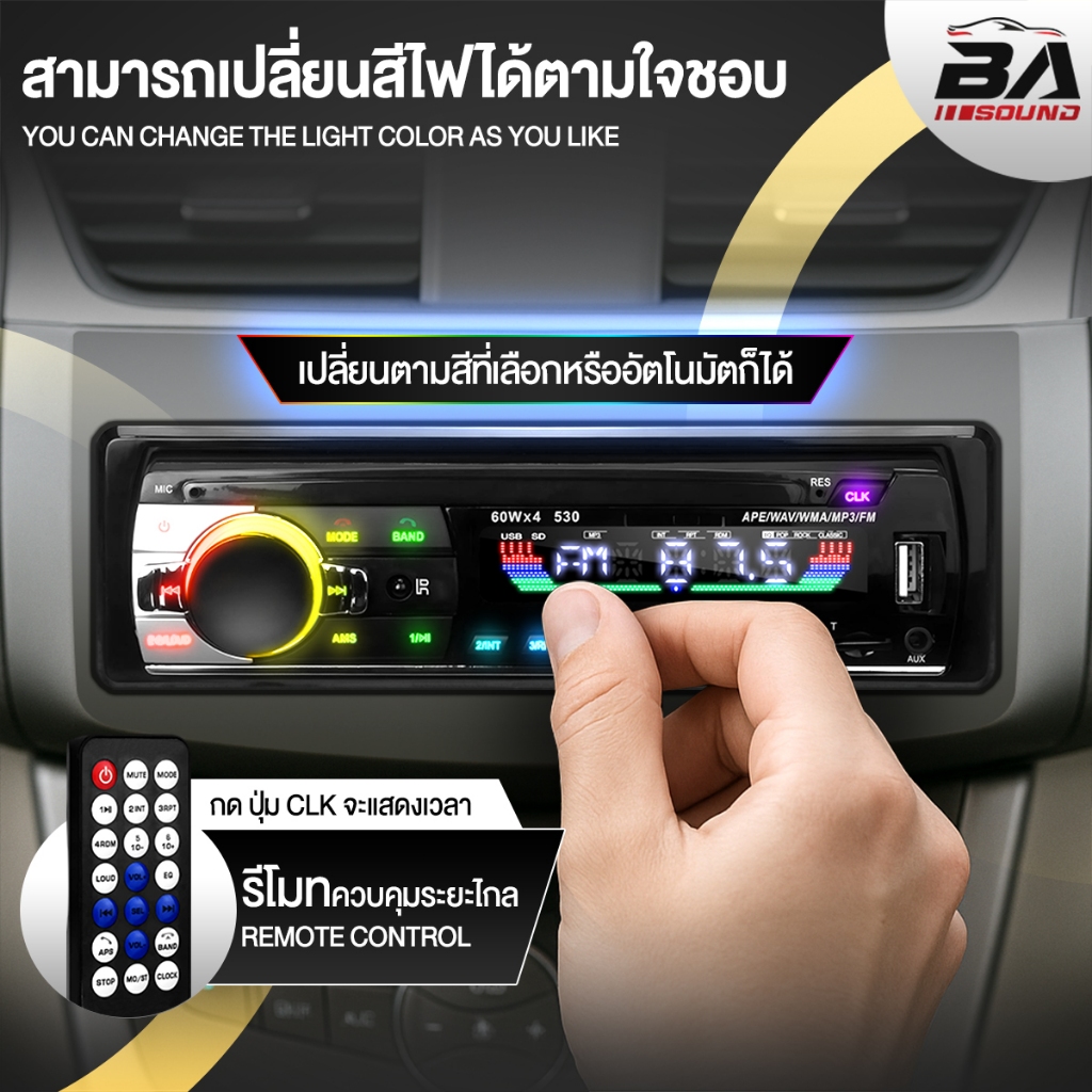 BA SOUND วิทยุติดรถยนต์ 1DIN BA-530LED มีระบบหาตำแหน่งรถ / รีโมทควบคุมระยะไกล รองรับ FM/บลูทูธ/USB/SD CARD/AUX