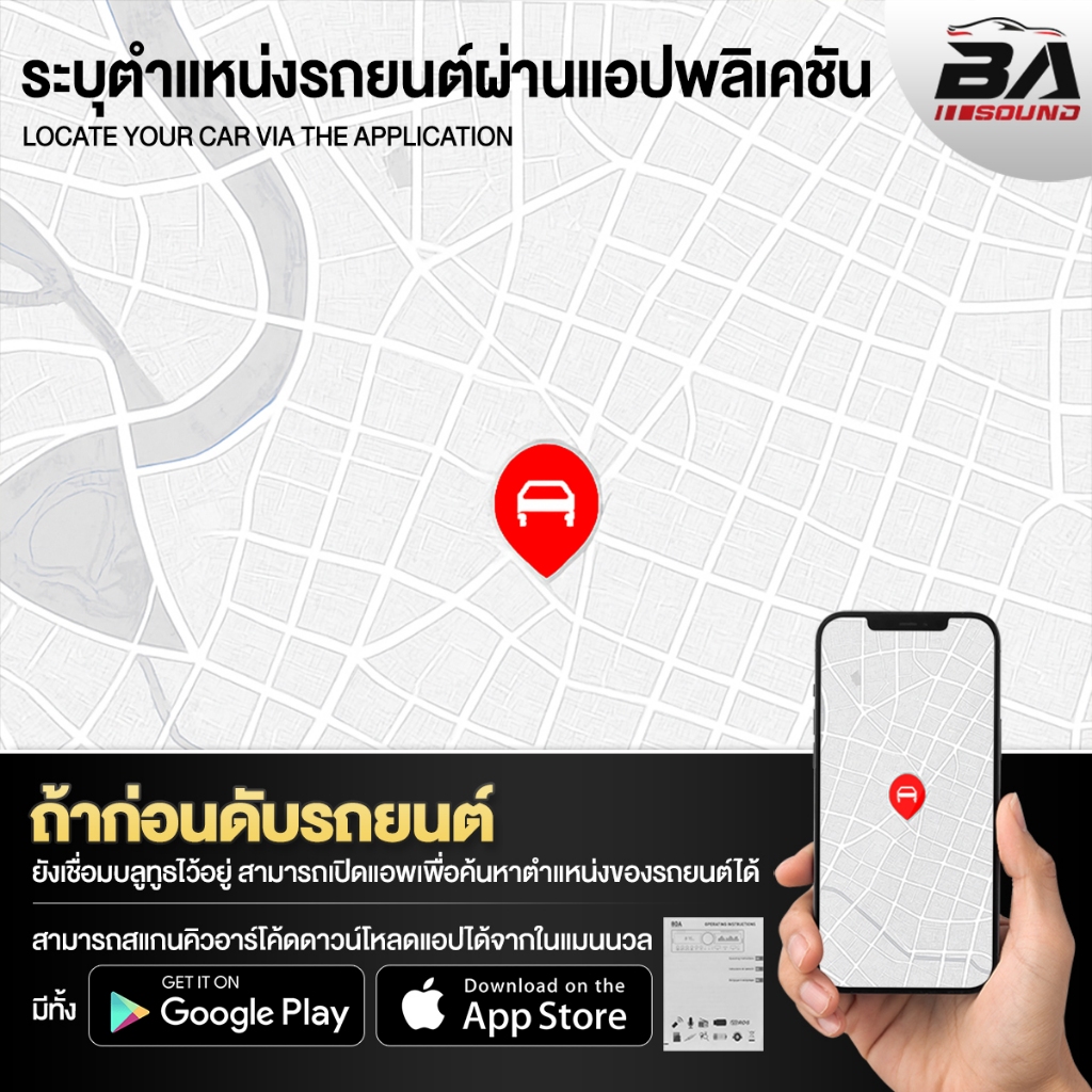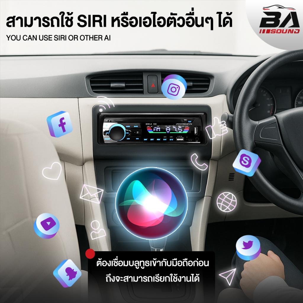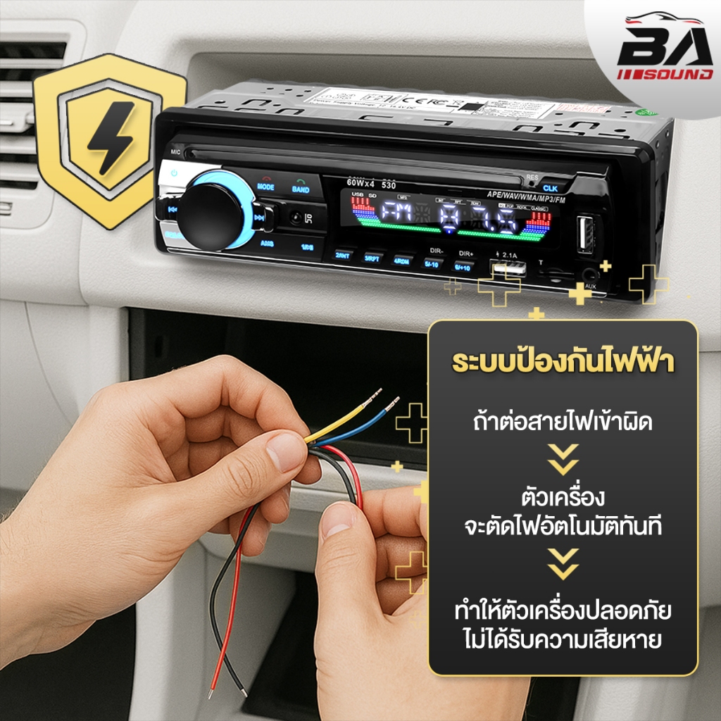 BA SOUND วิทยุติดรถยนต์ 1DIN BA-530LED มีระบบหาตำแหน่งรถ / รีโมทควบคุมระยะไกล รองรับ FM/บลูทูธ/USB/SD CARD/AUX