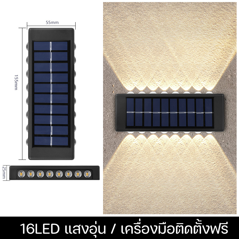 LED ไฟโซล่าเซลล์ โคมไฟติดผนัง พลังงานแสงอาทิตย์ Solar light สำหรับกลางแจ้ง โคมไฟติดผนังภายนอก
