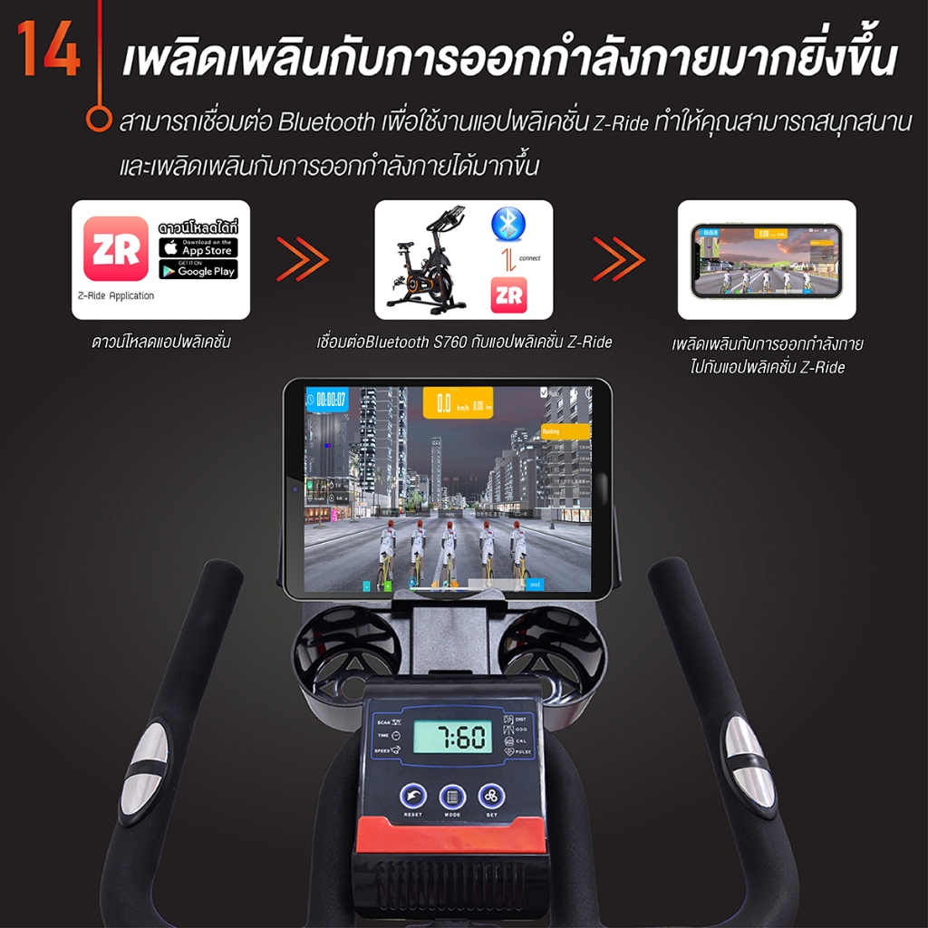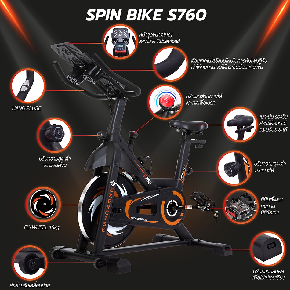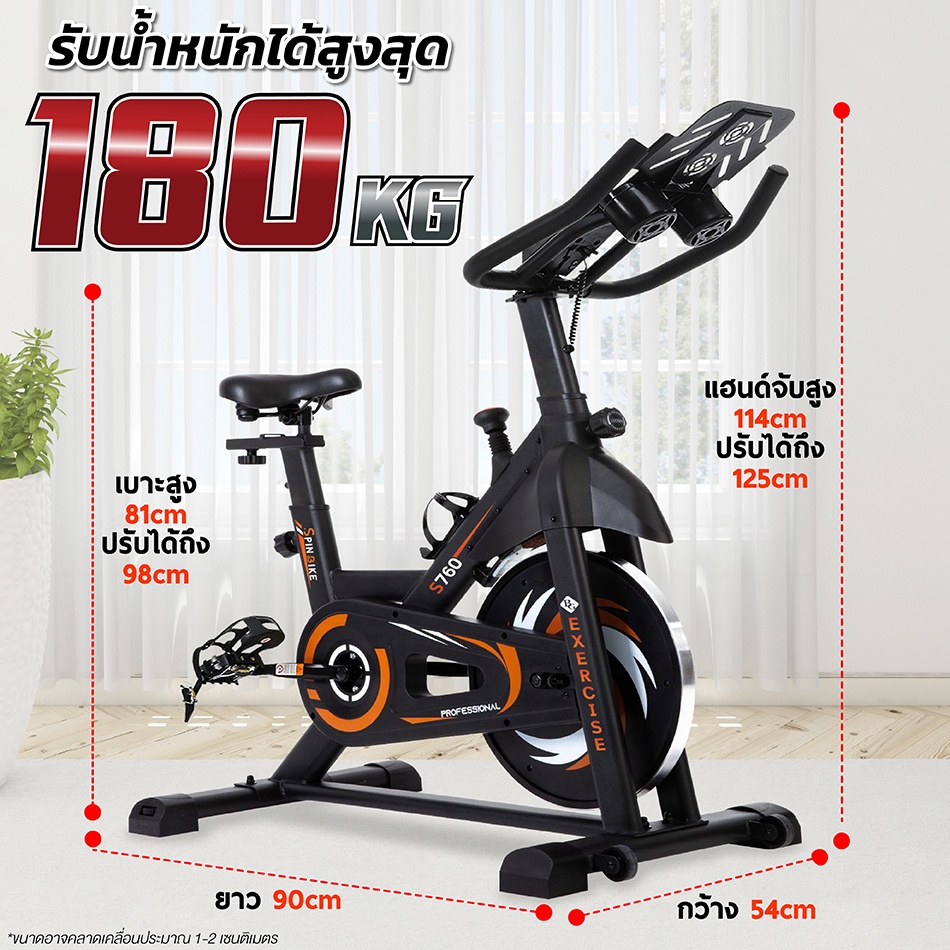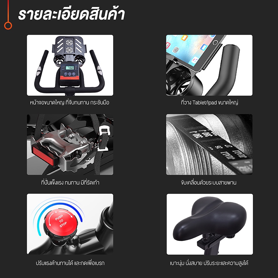BG จักรยานออกกำลังกาย SPIN BIKE รุ่น S760 จักรยานฟิตเนส หน้าจอ LED แสดงผล ระบบสายพาน