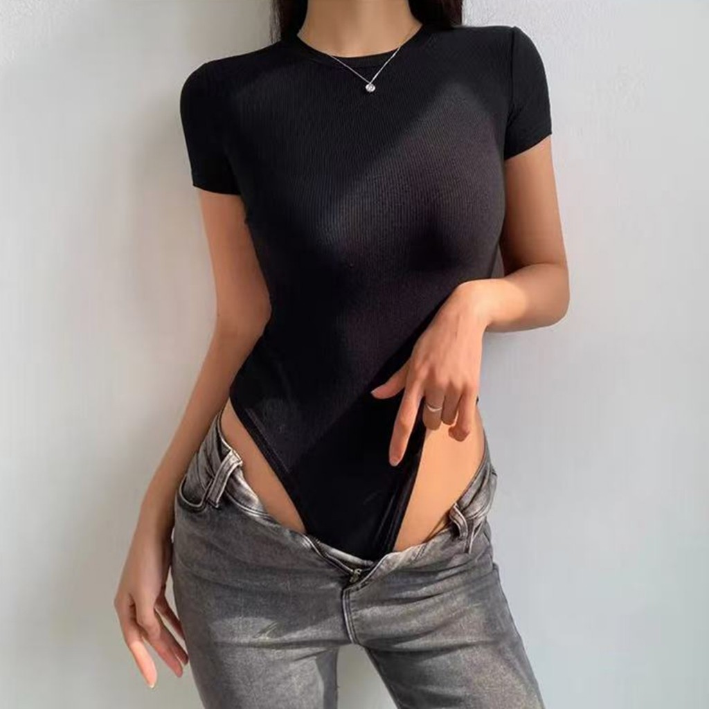 ชุดบอดี้สูทแขนสั้นผู้หญิงสไตล์ยุโรป ดีไซน์เก๋