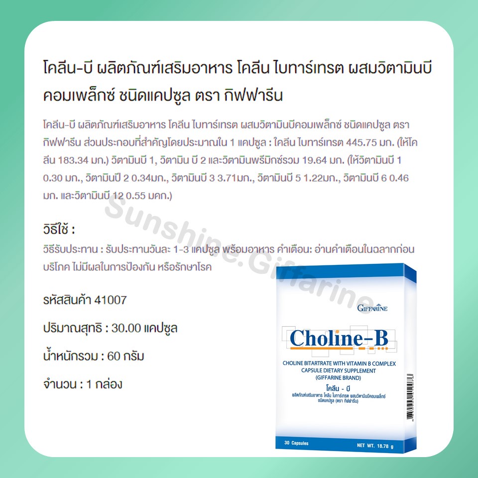 โคลีนบี วิตามินบีรวม กิฟฟารีน B-Complex GIFFARINE | แก้เหน็บชา บำรุงสมอง บำรุงประสาทและสมอง