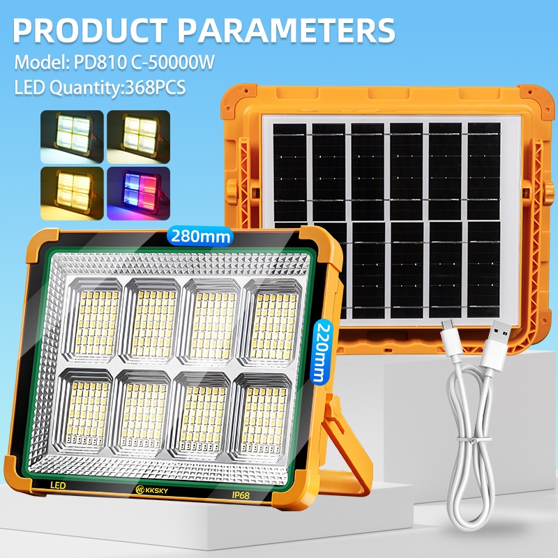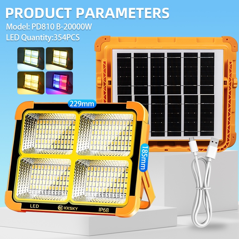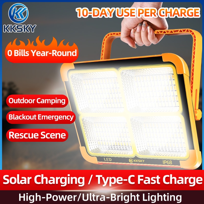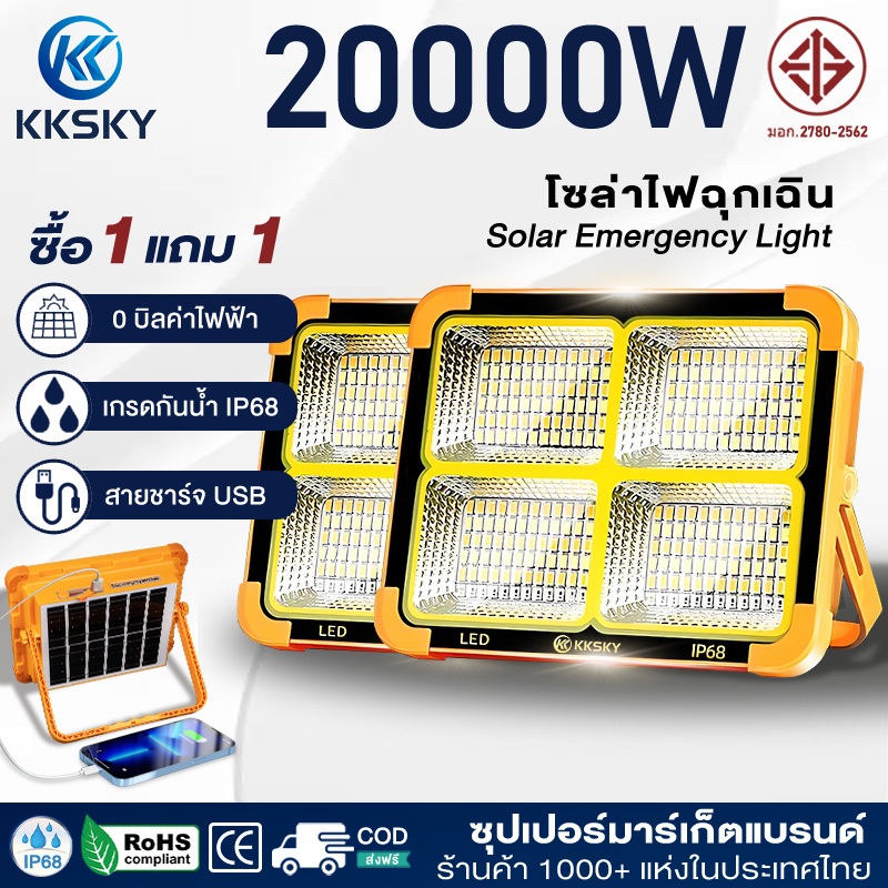 KKSKY ไฟฉุกเฉิน โซล่าเซลล์ LED 20000W ฝนตกชาร์จได้ สปอตไลท์พกพา ip68 solar light ไฟพกพาอเนกประสง ไฟฉุกเฉินในบ้าน ไฟโซล่า