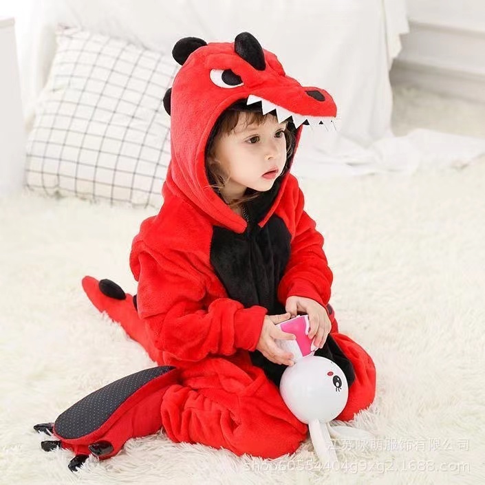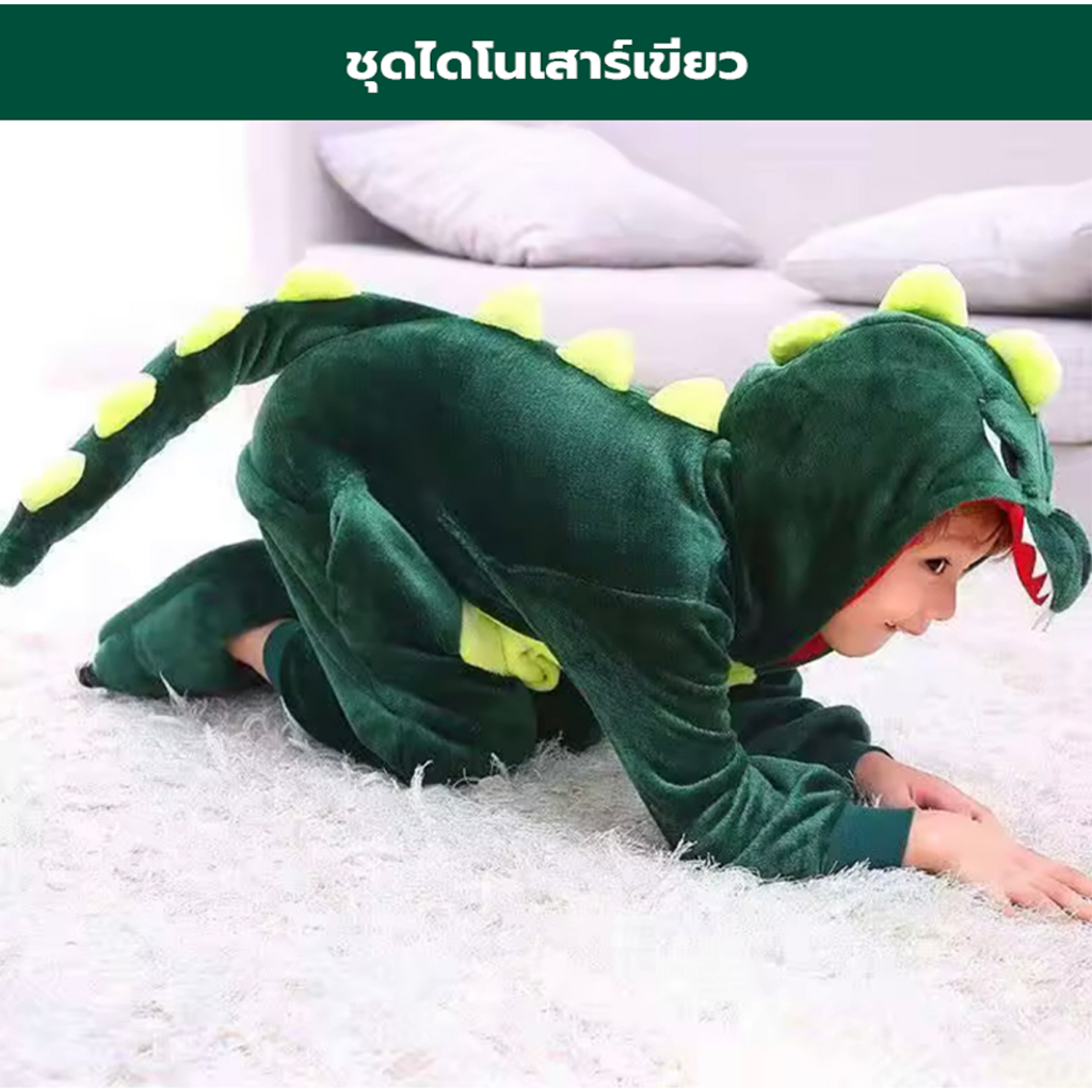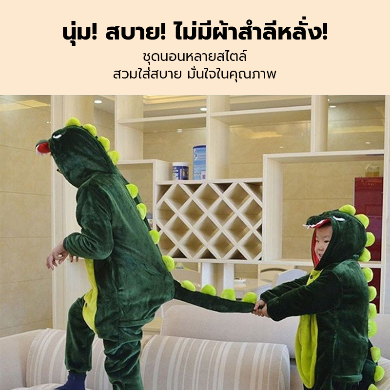 เด็กชุดมาสคอต ชุดก๊อตซิลล่า ชุดไ ดโนเสาร์ ก็อตซิลล่า เขียว ชุดนอนน่ารัก ชุดโฮม ชุดนอนฤดู หนาวสำหรับเด็ก หนา นุ่ม