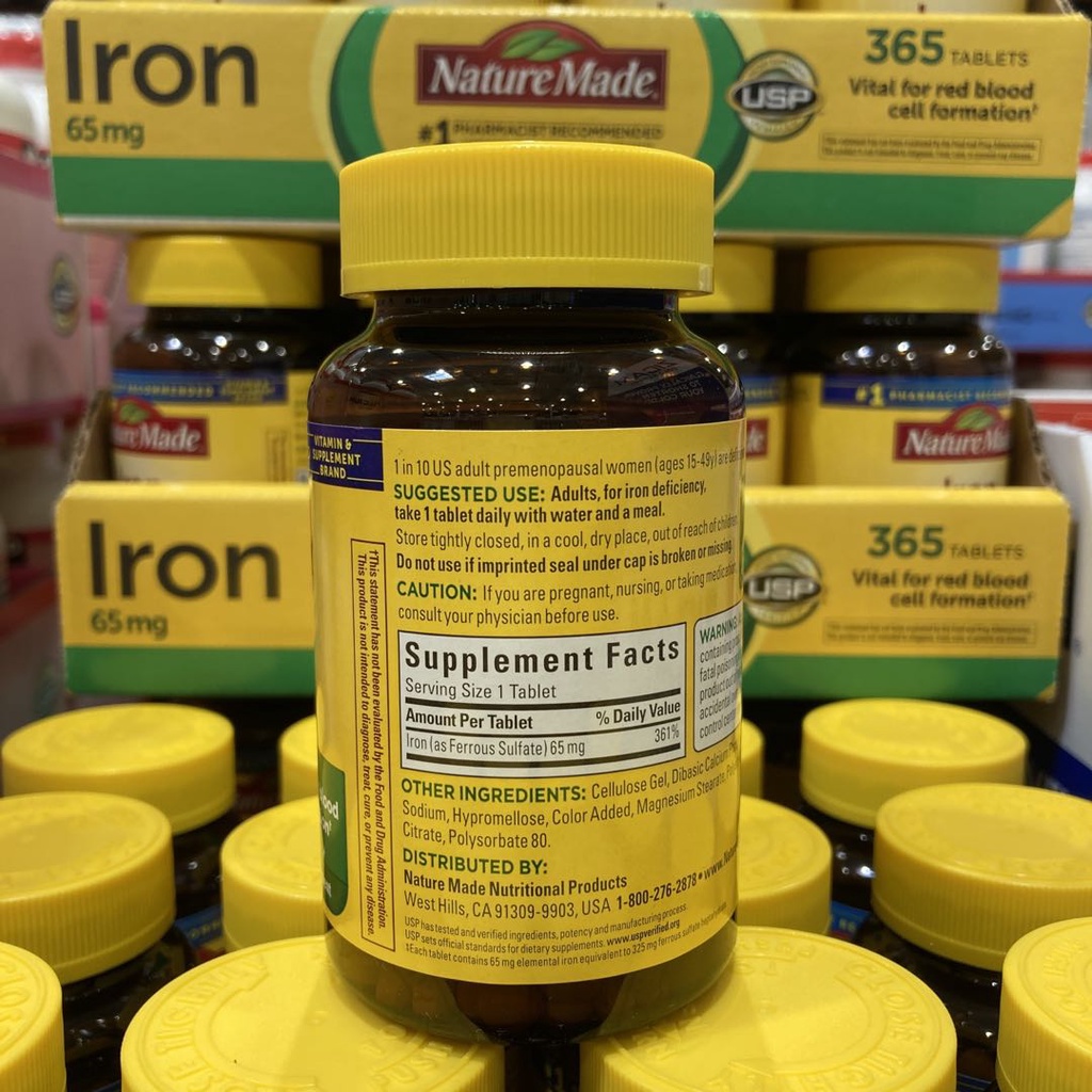 (Exp.08/2027)Nature Made Iron 65 mg 365 Tablets วิตามินเสริมธาตุเหล็ก 65 มิลลิกรัม 365 เม็ด
