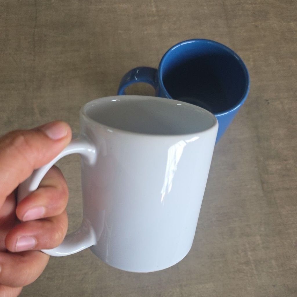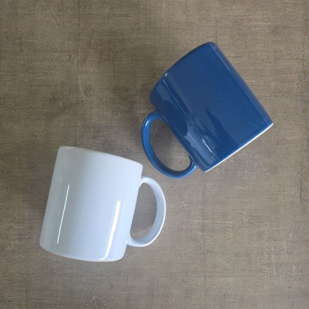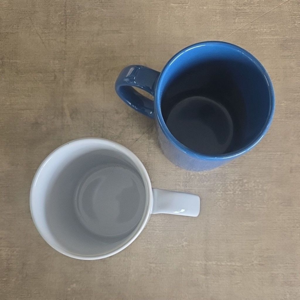 แก้วมัคเซรามิค สีขาว สีน้ำเงิน