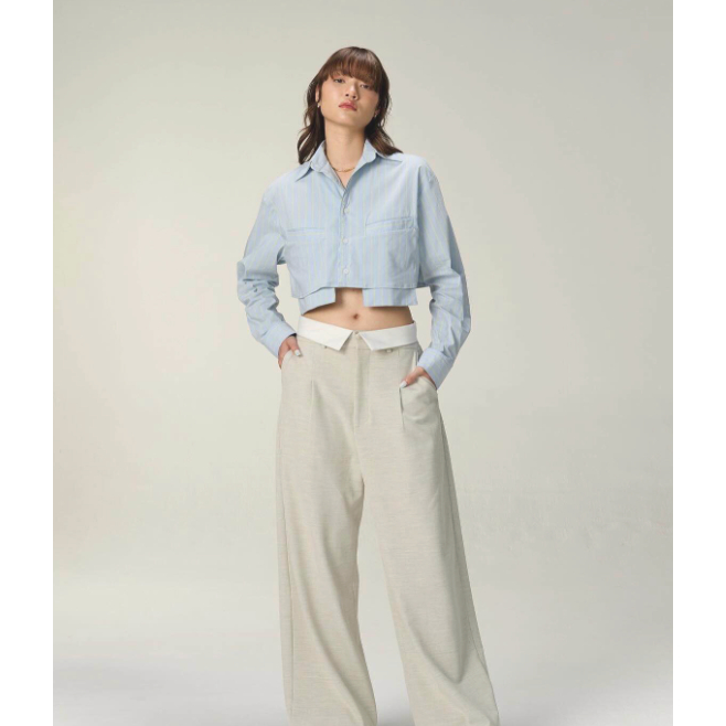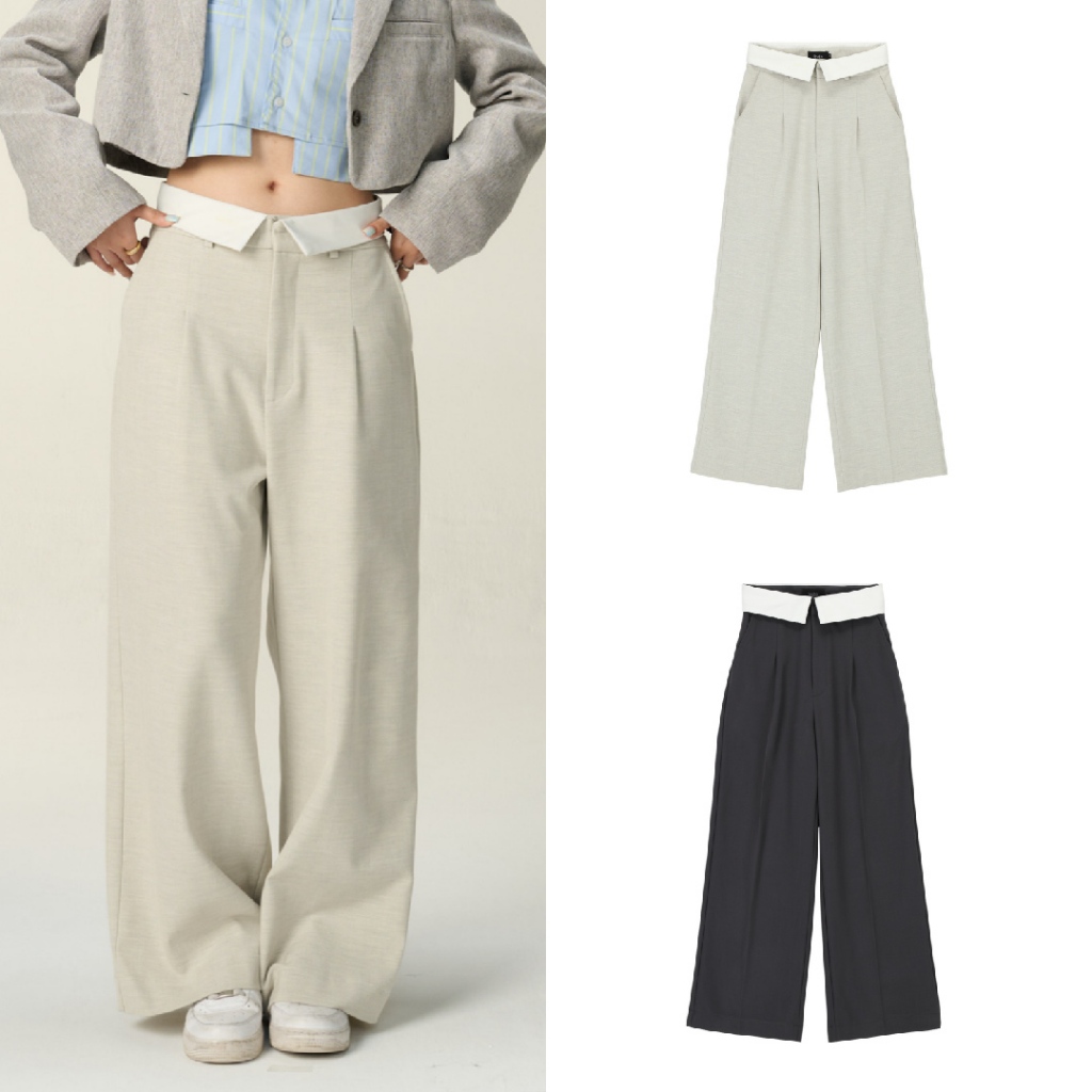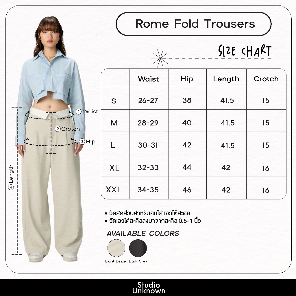 STUDIO UNKNOWN - Rome Fold Trousers กางเกงขาบานดีเทลพับขอบเอว