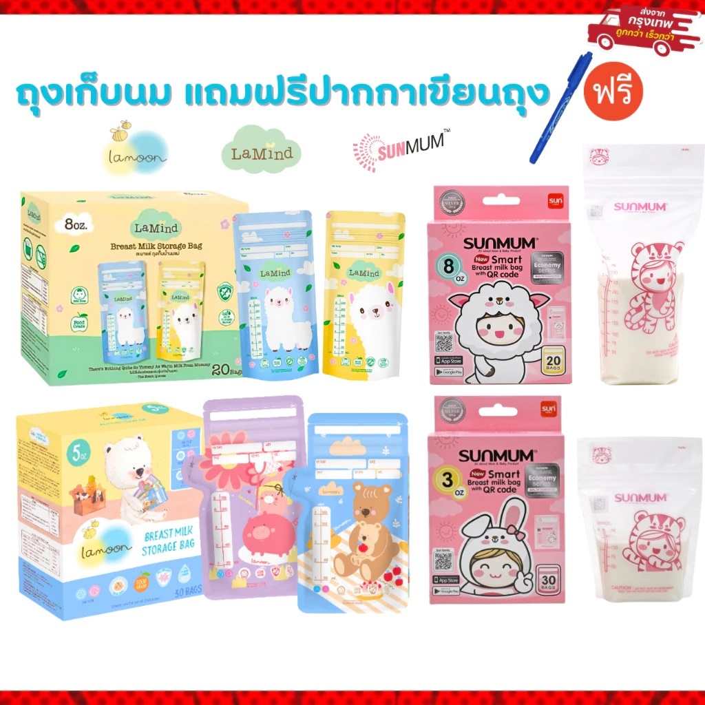 (Live ลดโหด) ถุงเก็บน้ำนม ละมุน ละมาย ถุงจัดเรียง Lamoon Lamind Sunmum แถมฟรี ปากกาเขียนถุง 1 แท่ง/ออเดอร์นะคะ