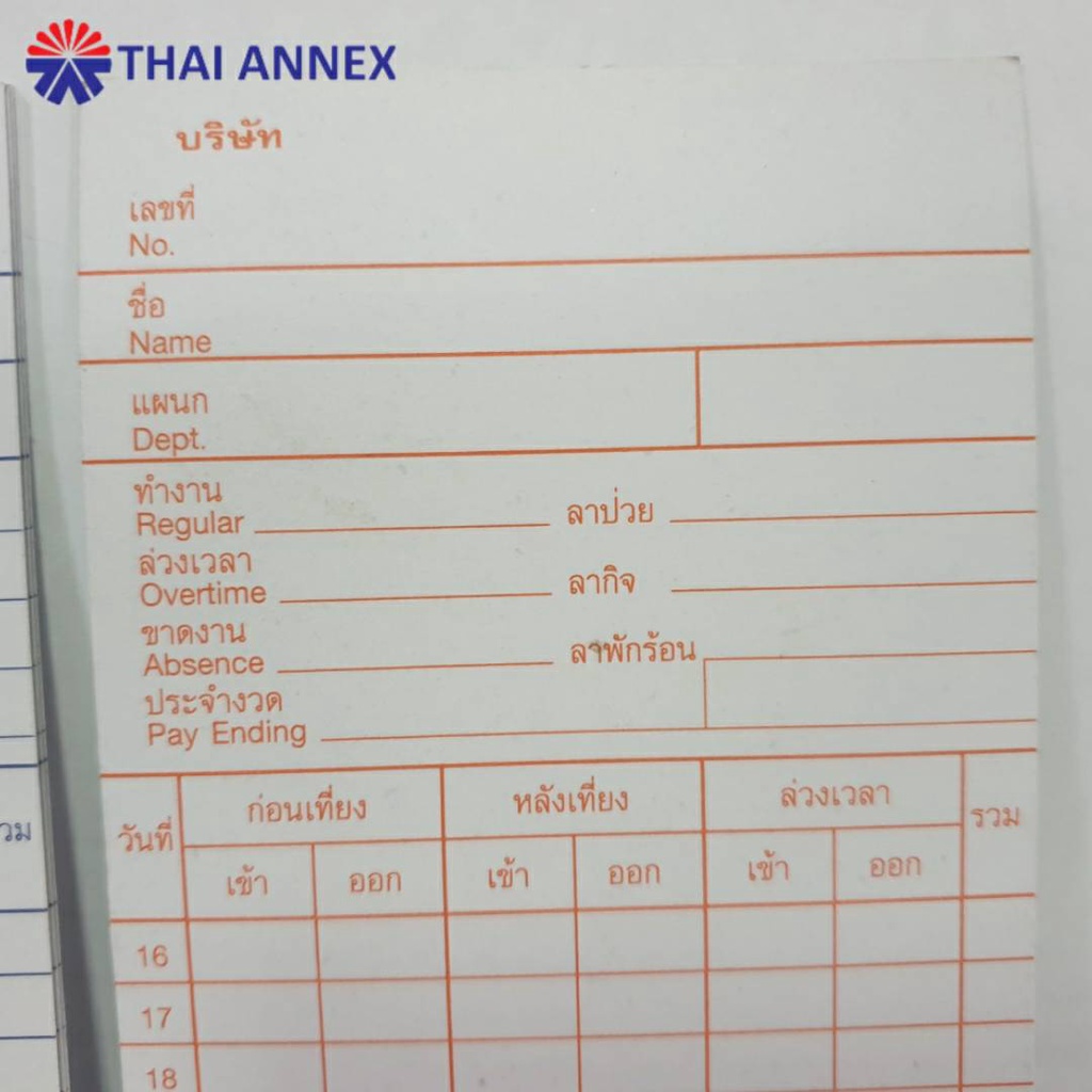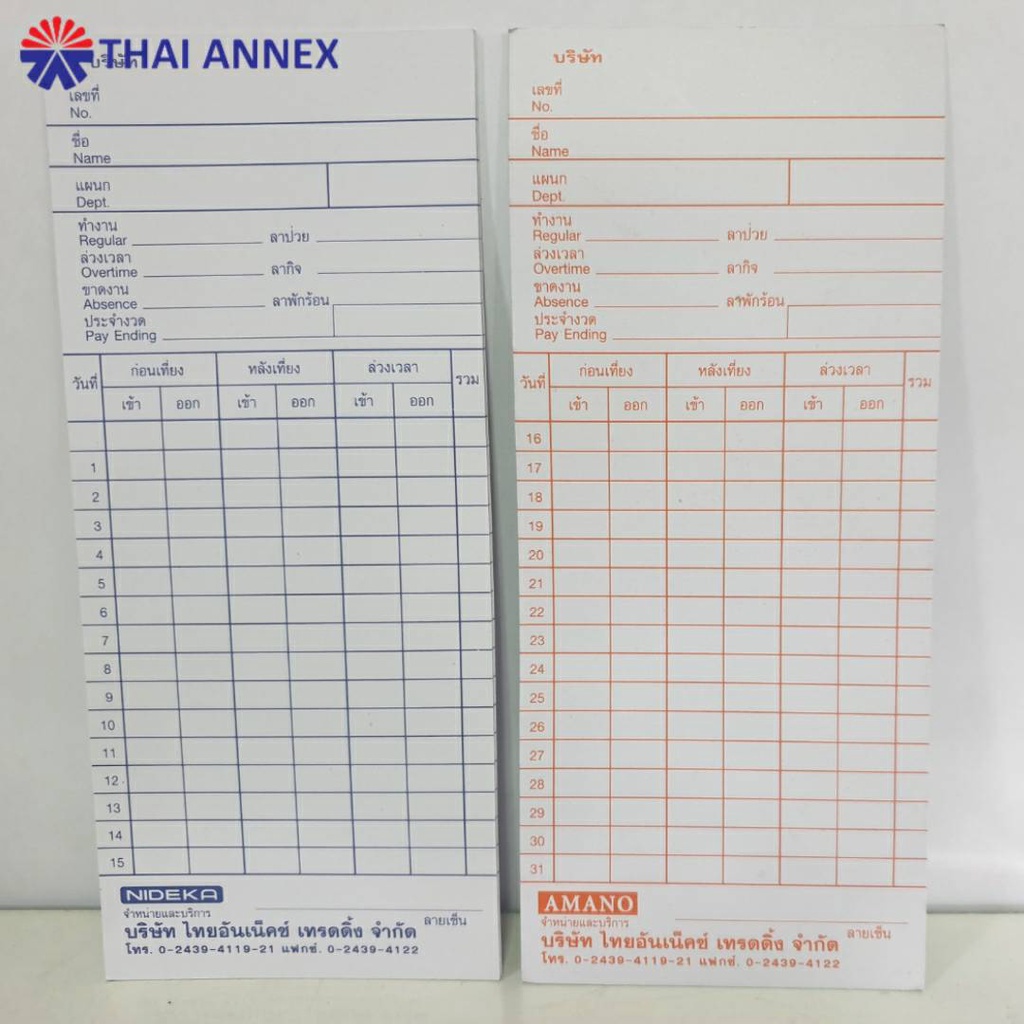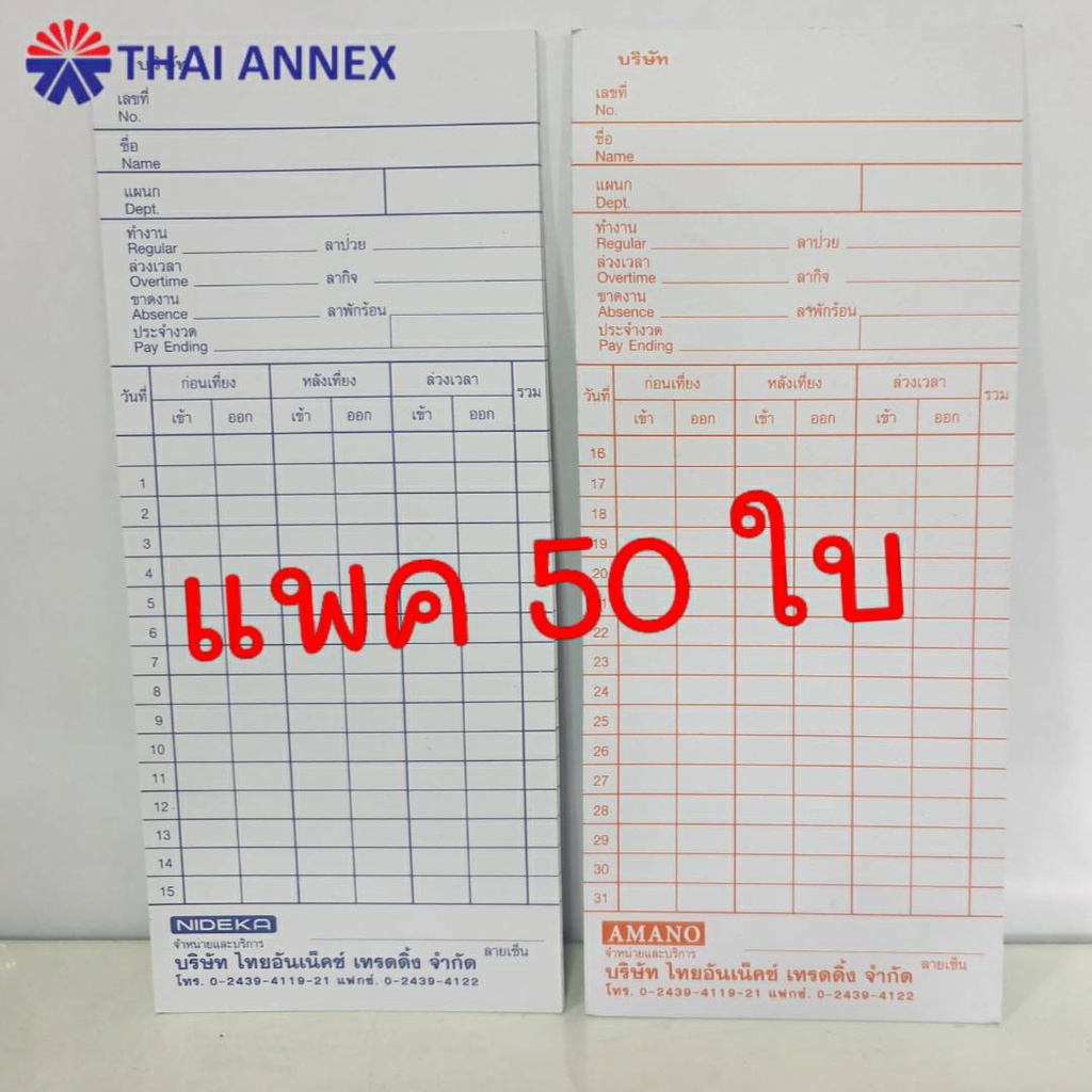 บัตรตอก (ขอบเรียบ) จำนวน 50 ใบ บัตรลงเวลาพนักงาน ใช้กับเครื่องตอกบัตร
