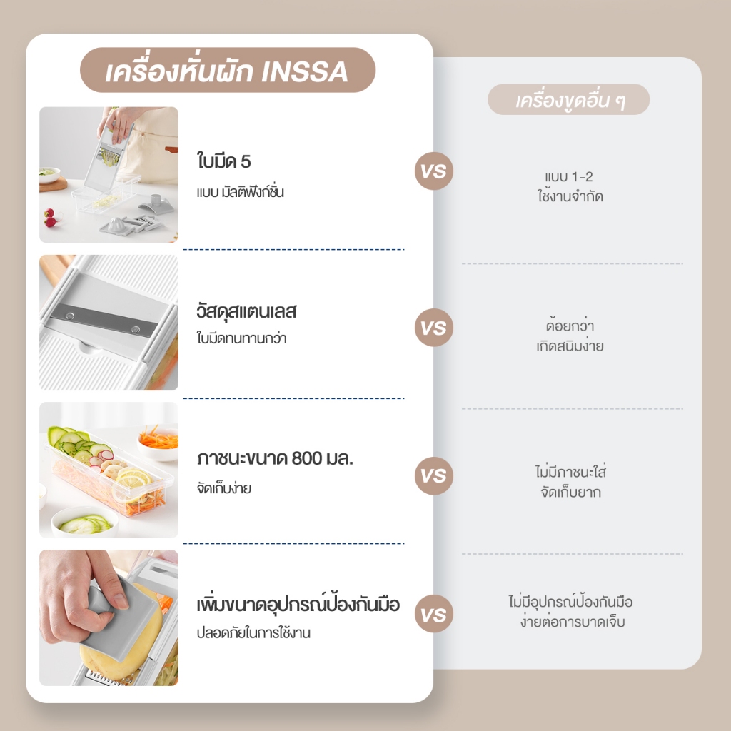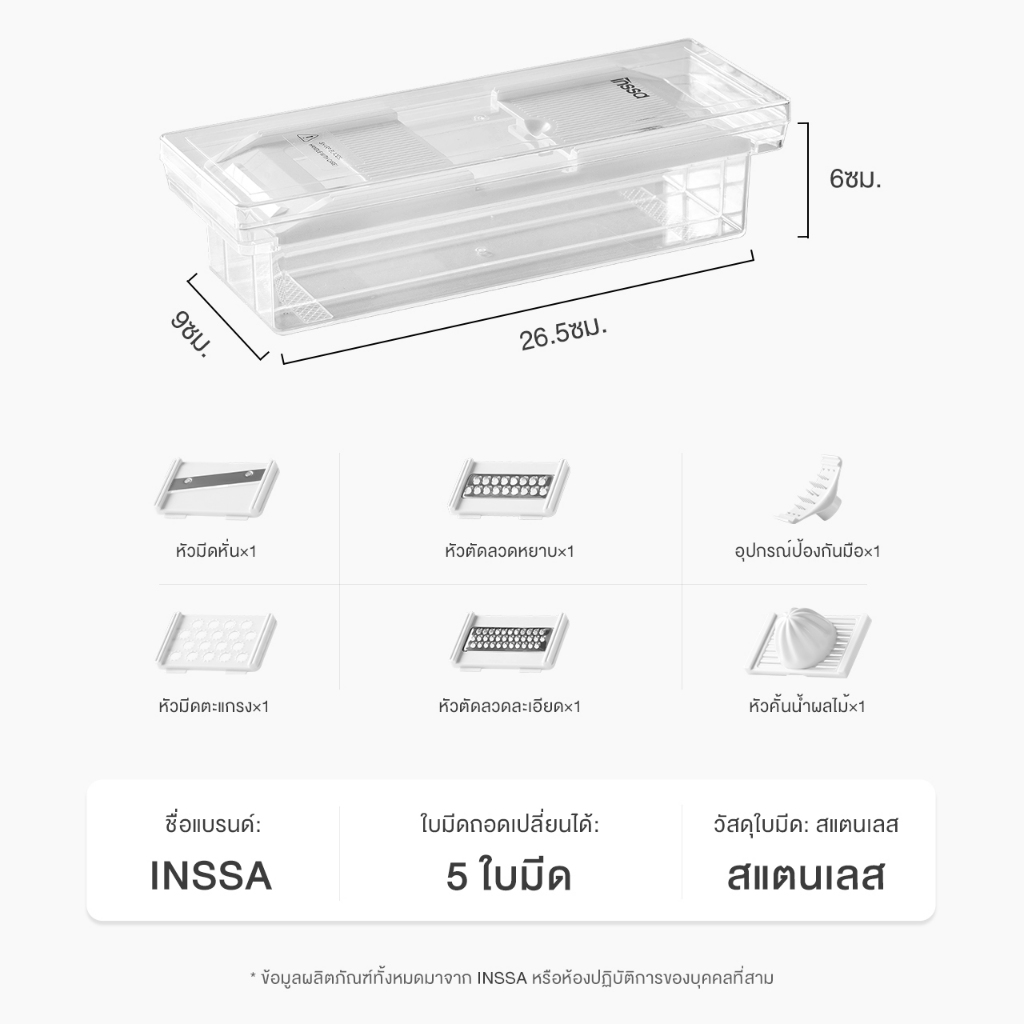 Prenta x INSSA เครื่องหั่นผัก อเนกประสงค์ 5 ใบมีด พร้อมภาชนะสำหรับใส่ PSQH001