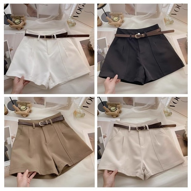 [ส่งไวจากไทย] Fulllove กางเกงขาสั้นเอวสูง เสื้อผ้าผู้หญิง เวอร์ชันเกาหลี แฟชั่น รูปตัวหนึ่ง สีทึบ ขนาดใหญ่ ชุดสูท