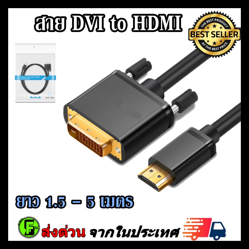 สาย DVI to HDMI Cable สายเกรดA สาย DVI to HDMI Cable ยาว 1.5 - 5 เมตร สายhdmi to dvi รองรับ 1080P