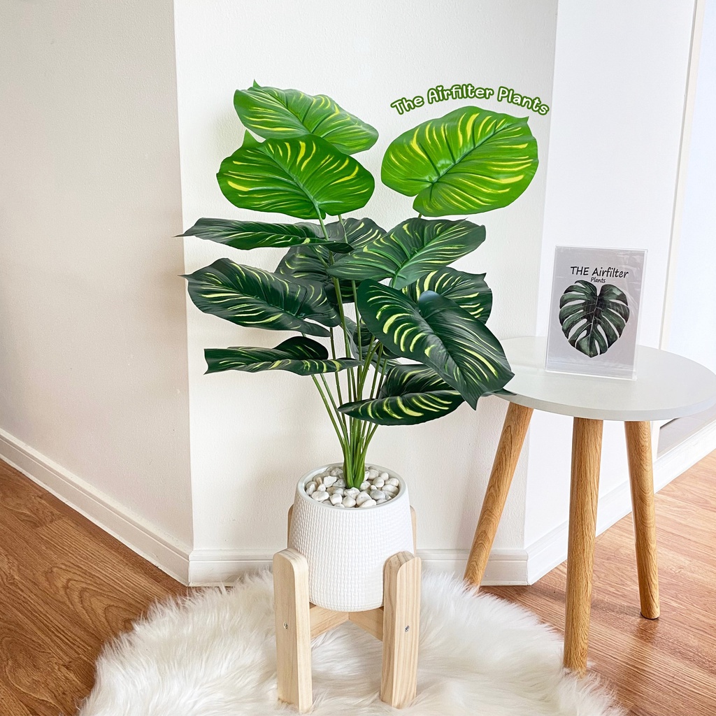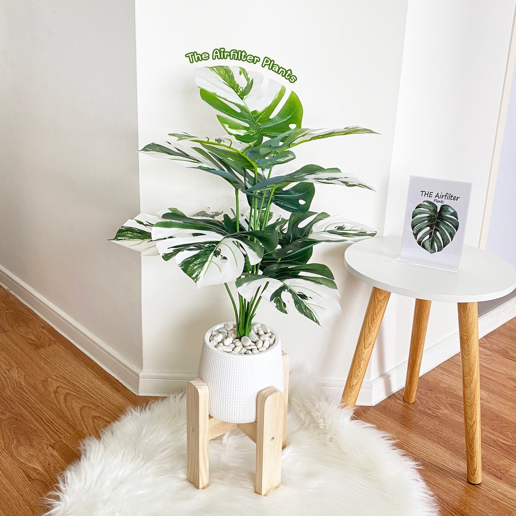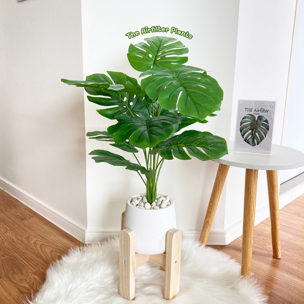 ต้นไม้ปลอม(ฟรี!!หินโรย) ต้นไทรใบสัก,มอนสเตอร่า ฯลฯ สูง40-78ซม. ต้นไม้มงคล พร้อมกระถางและหินสีขาว