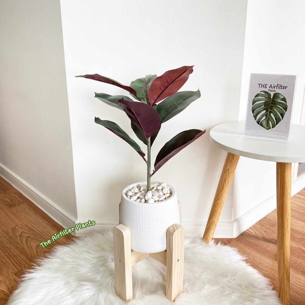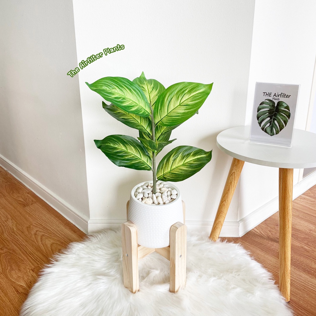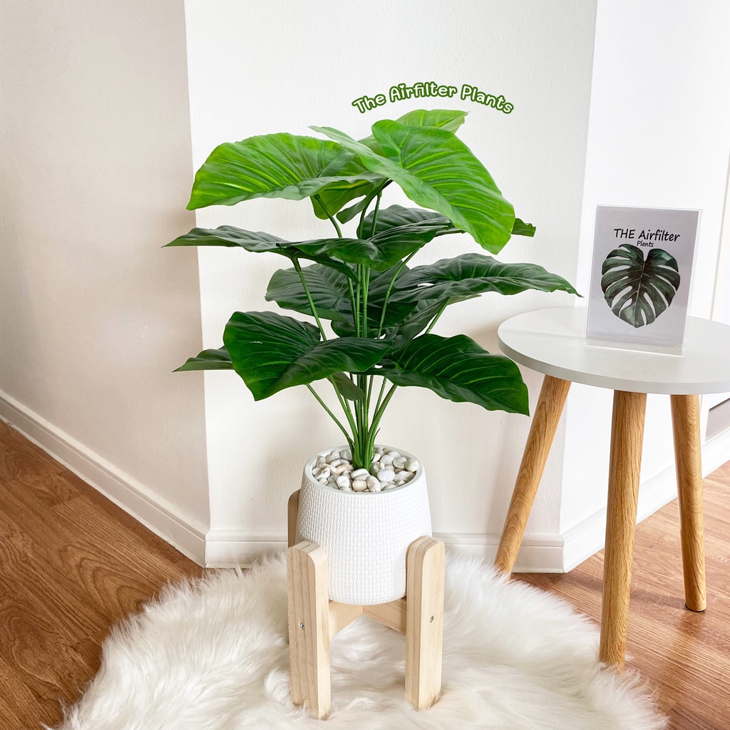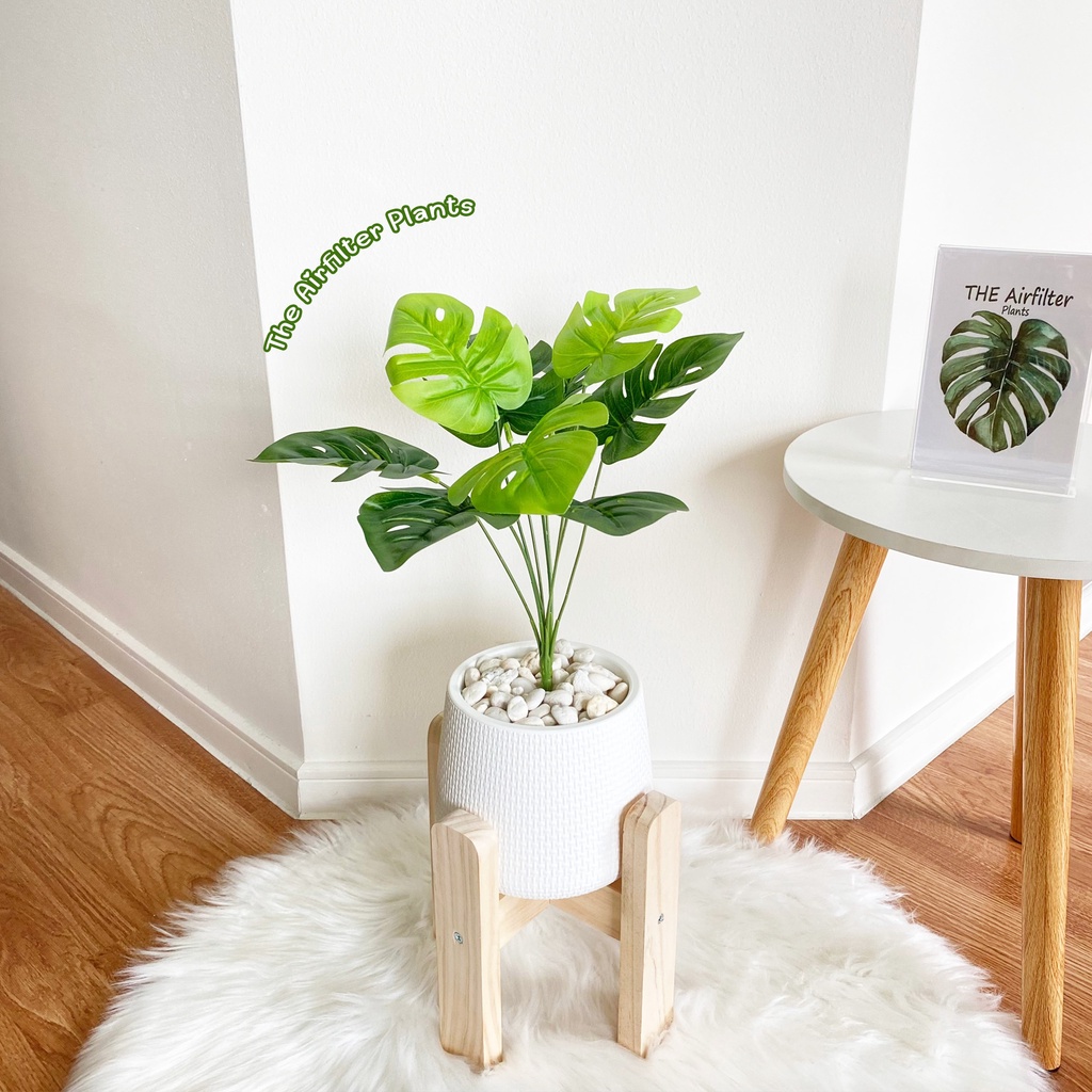 ต้นไม้ปลอม(ฟรี!!หินโรย) ต้นไทรใบสัก,มอนสเตอร่า ฯลฯ สูง40-78ซม. ต้นไม้มงคล พร้อมกระถางและหินสีขาว
