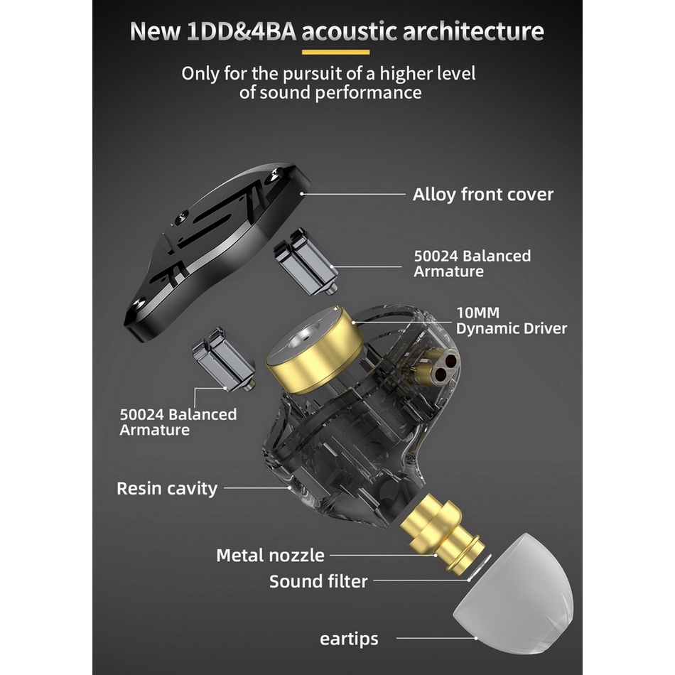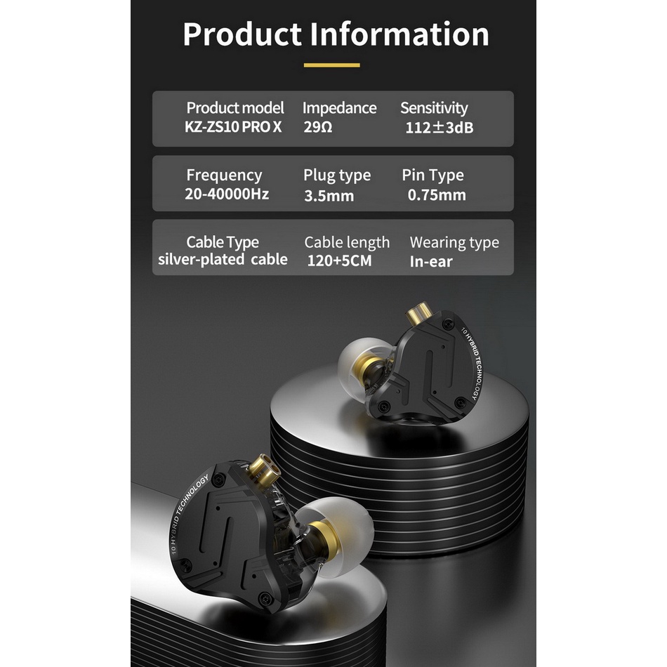 [-ประกันศูนย์ไทย-] KZ ZS10 Pro X หูฟัง 5 ไดรเวอร์ 4BA+1DD ของแท้