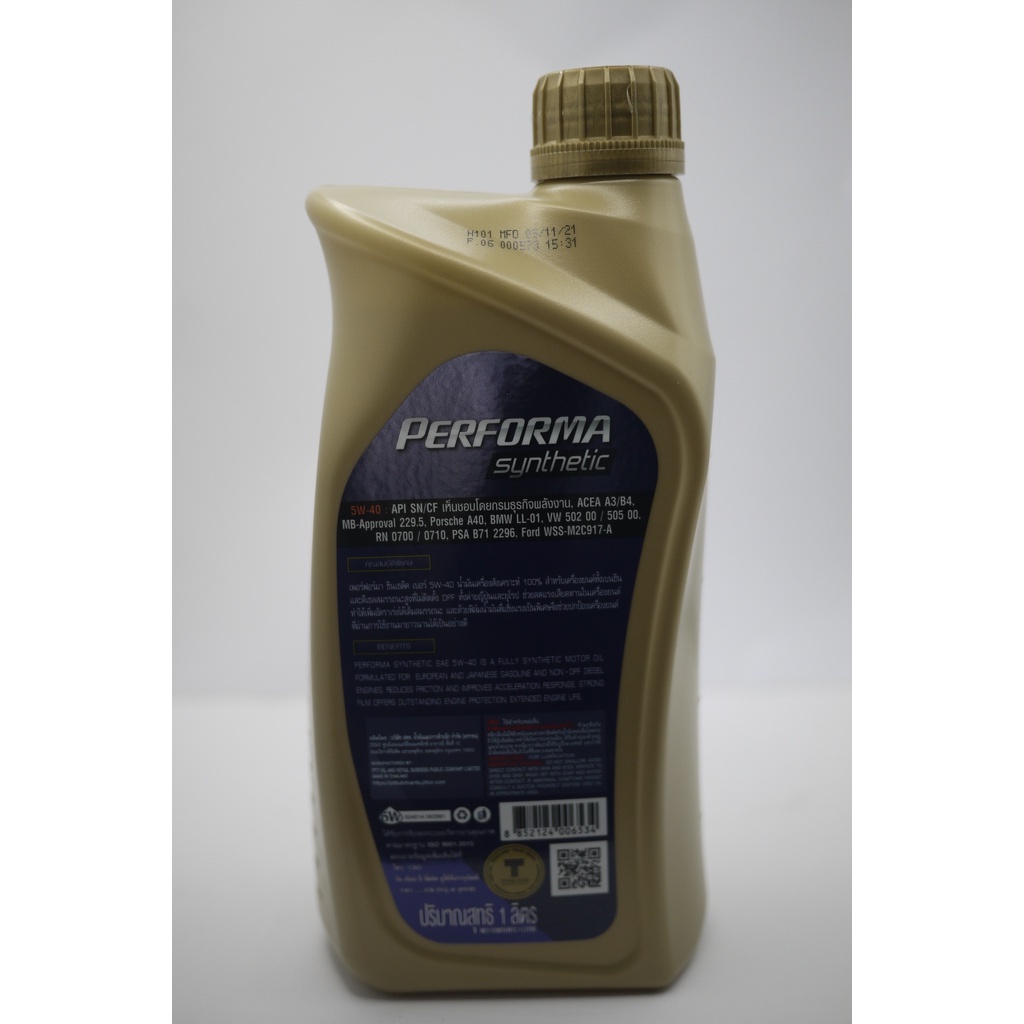 น้ำมันเครื่องเบนซินสังเคราะห์ ปตท เพอร์ฟอร์มา ซินเธติค 5W-40 1L PTT PERFORMA SYNTHETIC 5W-40 1 ลิตร