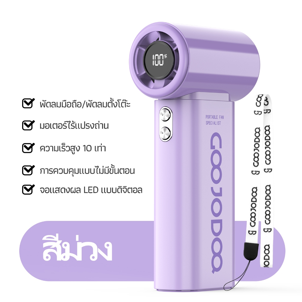 GOOJODOQ GFS007 พัดลมพกพา 4000mAh แรงลมเพิ่มขึ้น 10 เท่า หน้าจอ LED แบตเตอรี่