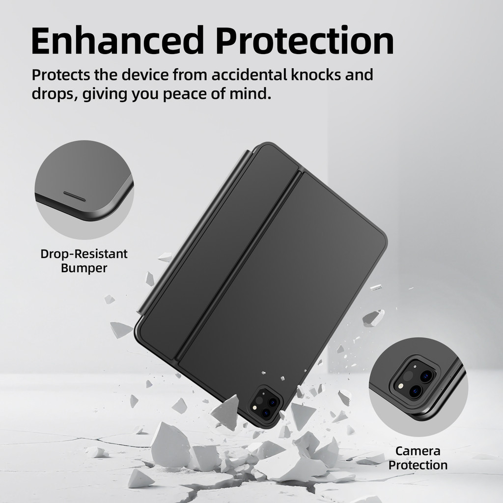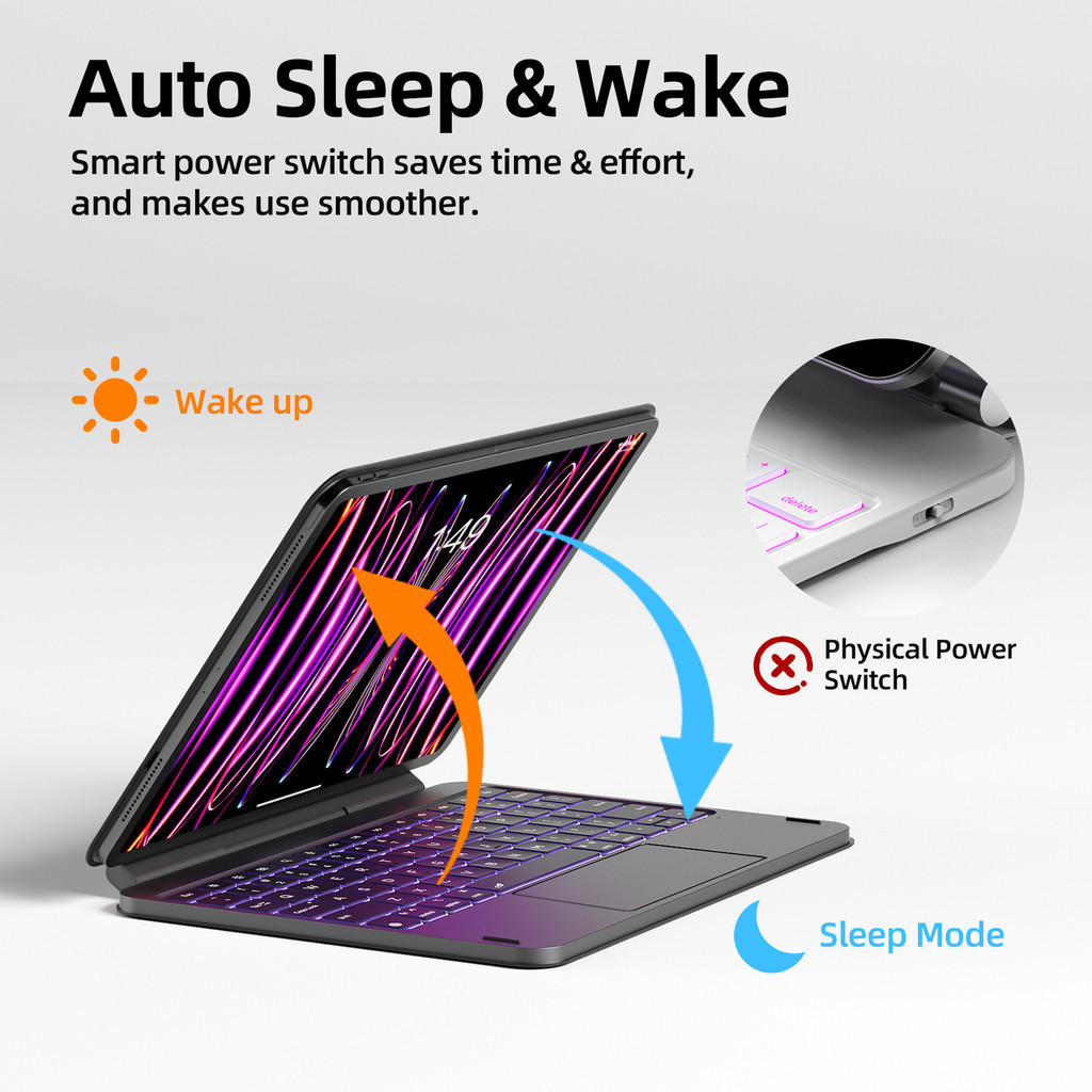 GOOJODOQ Bluetooth Magic Keyboard Flat Hinge Design Strong Magnetic Suspension Bracket Adjustable Backlight System