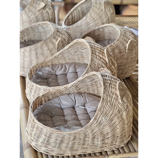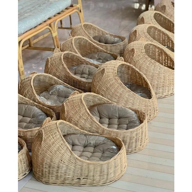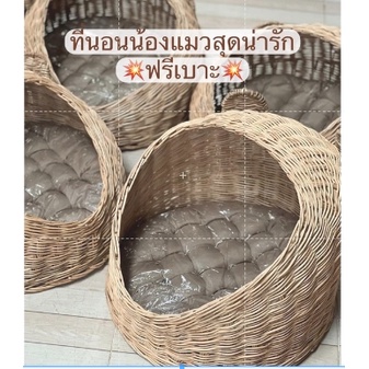 หวายแมว ‼️ฟรีเบาะ‼️ลอตเบาะสีเทาตามรูป ที่นอนแมว ตะกร้าแมว บ้านแมว
