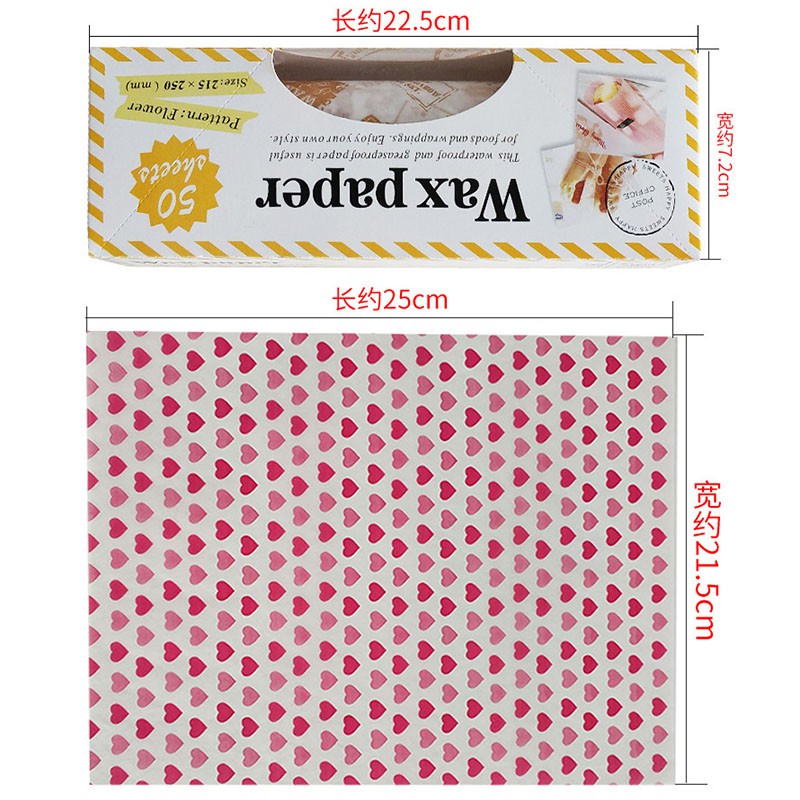 50 ชิ้น / กล่อง กระดาษแว็กซ์ กระดาษห่ออาหาร แบบใช้แล้วทิ้ง กระดาษห่อขนม กันน้ํามัน กระดาษไขรองอบ กระดาษสบู่ บรรจุภัณฑ์