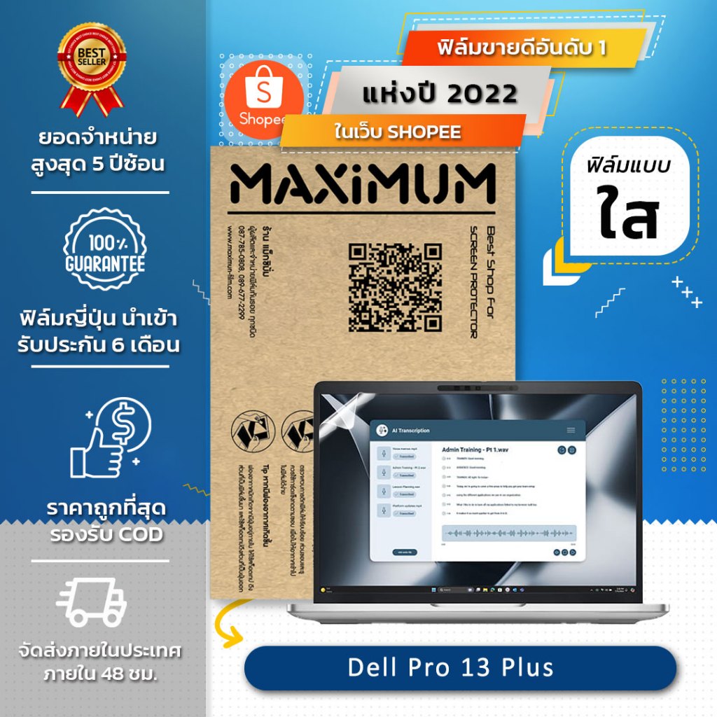 ฟิล์มกันรอย โน๊ตบุ๊ค รุ่นDell Pro 13 Plus 13.3 16:10 (ขนาดฟิล์ม 13.3 นิ้ว : 28.5 x 17.9 ซม.)