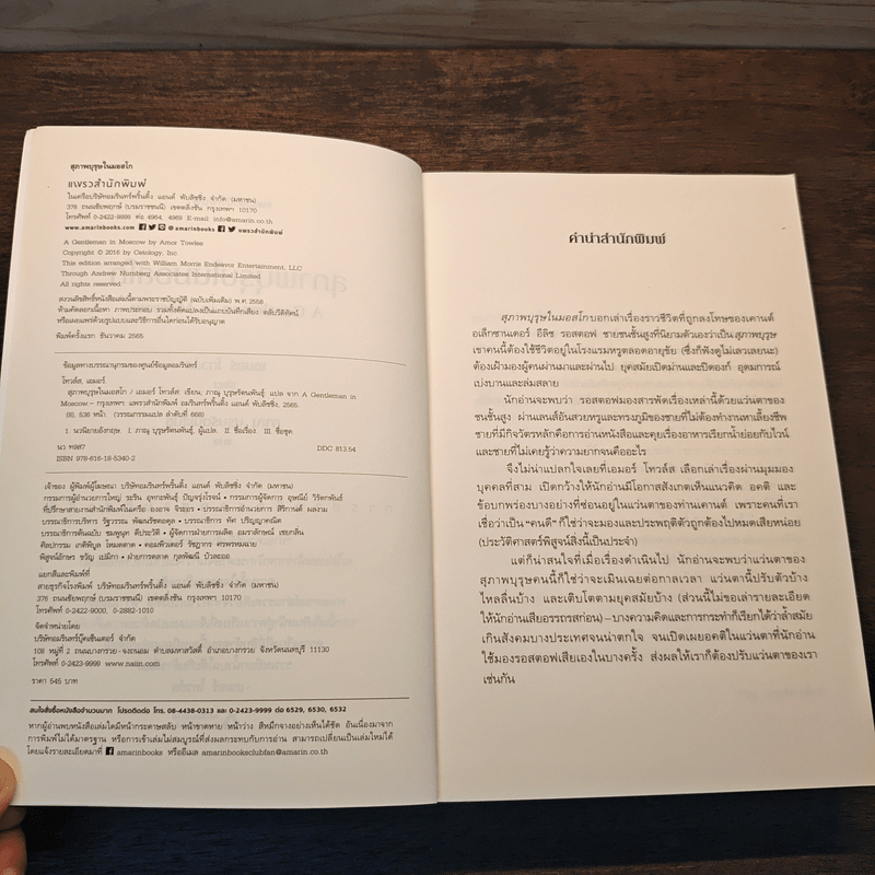 สุภาพบุรุษในมอสโก A Gentleman In Moscow - เอมอร์ โทล์วส์ 🏷️1128875