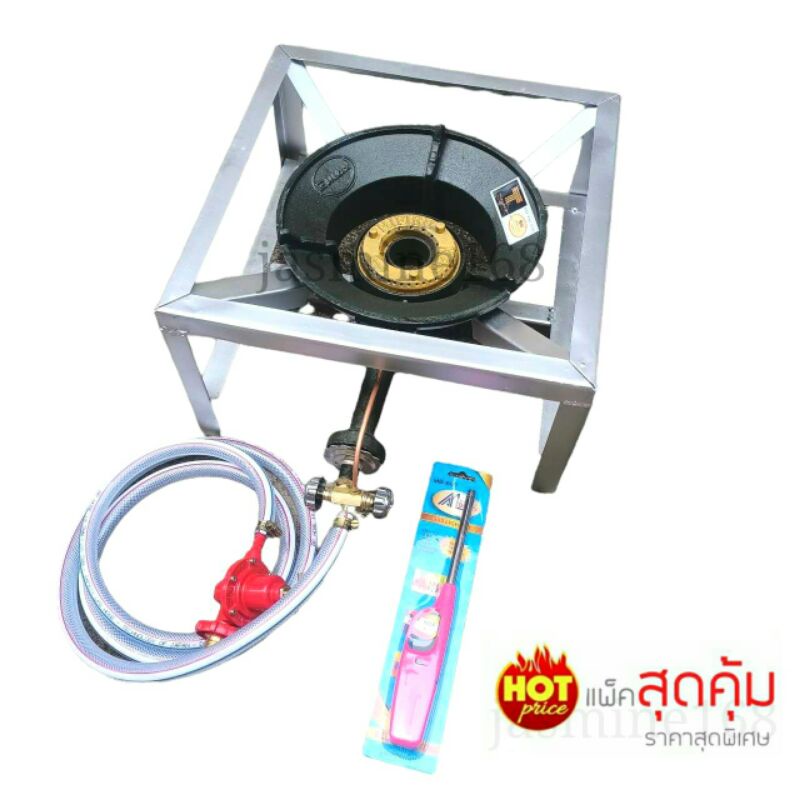ชุดหัวเตาแม่ค้า หัวเร่ง KB5 ยี่ห้อ Gmax ขาเหลี่ยมเตี้ย ขนาด 40x40x23 ซม. พร้อมหัวปรับแรงดันสูงSCG+สาย2เมตรครบชุด