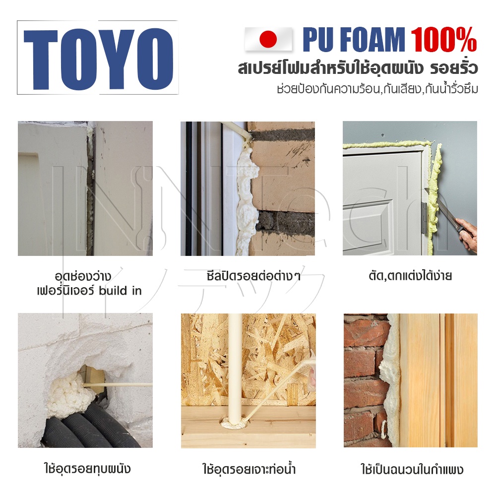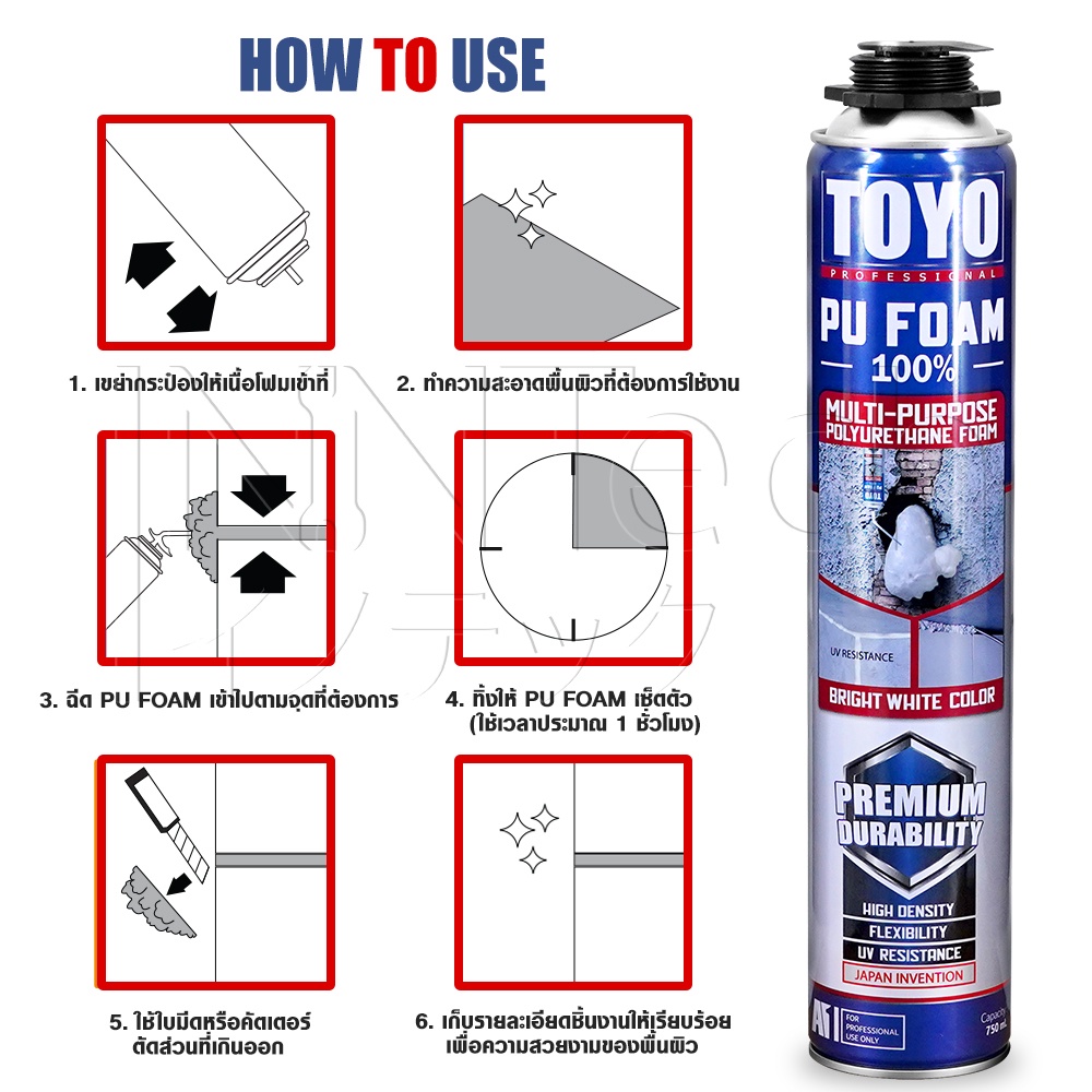 Premium PU FOAM TOYO มีความหนาแน่นสูงที่สุด ระดับ A1 พียูโฟม สเปรย์พียูโฟม พียูโฟมกระป๋อง อุดรอยรั่ว-แตกร้าว ขนาด 750 ml