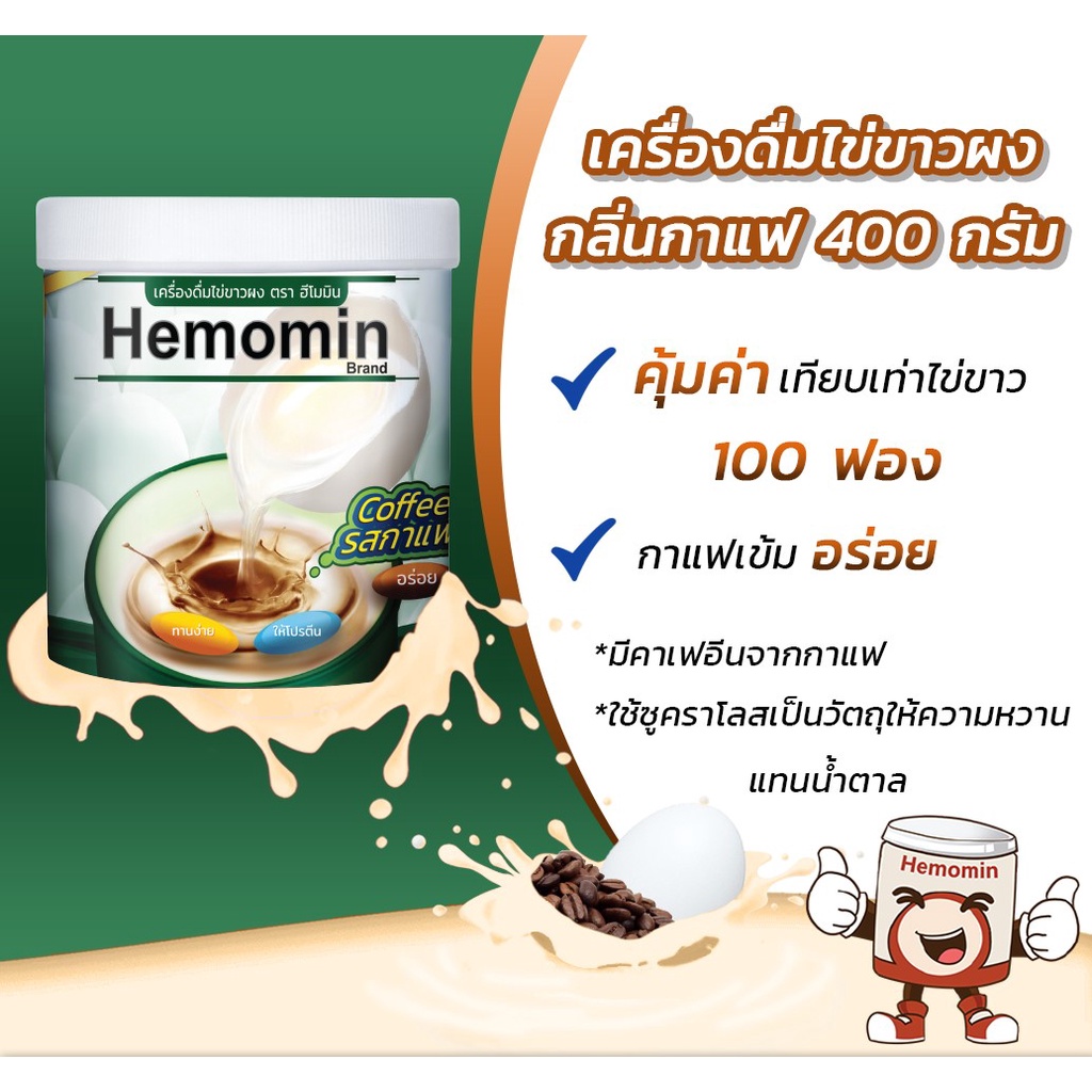 Hemomin โปรตีนไข่ขาวชนิดผง รสกาแฟ 400 กรัม
