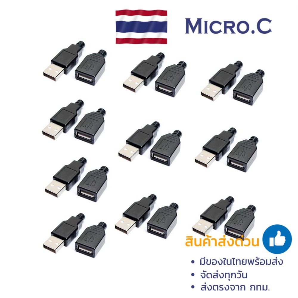 พอร์ตเชื่อมต่อ USB Type A 4P (ตัวผู้ / ตัวเมีย) – Plastic Connector (1 ตัว)