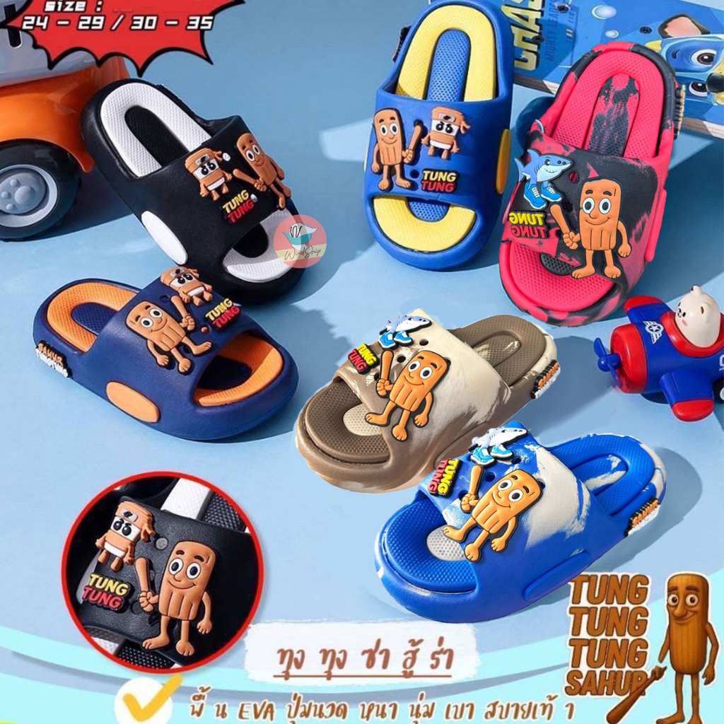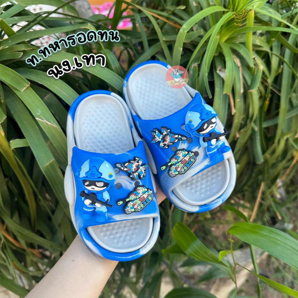 รองเท้าเด็ก ทุงทุง มายคราฟ Mindcraft ทหาร รองเท้าแตะเด็ก พื้นหนา (SK94)