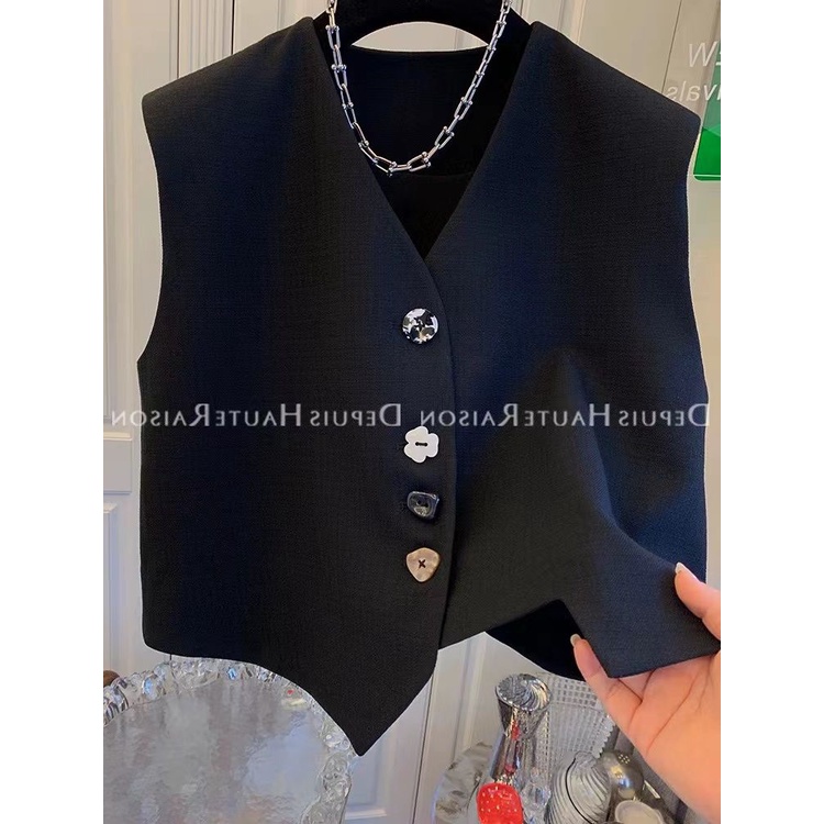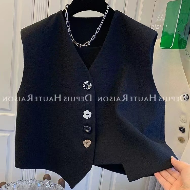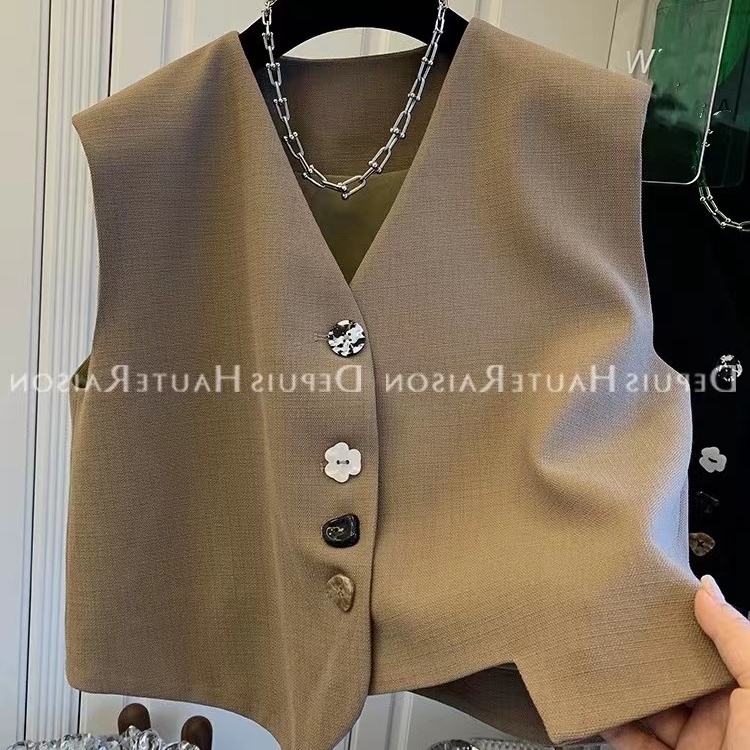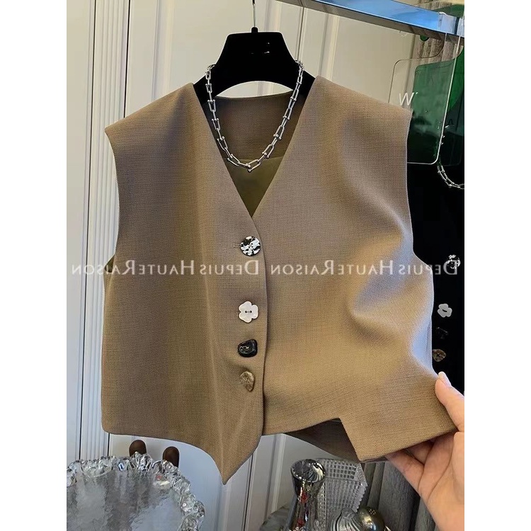 เสื้อกั๊กสูท แต่งกระดุม ทรงไม่สม่ําเสมอ ทรงหลวม สไตล์ตะวันตก สําหรับผู้หญิง