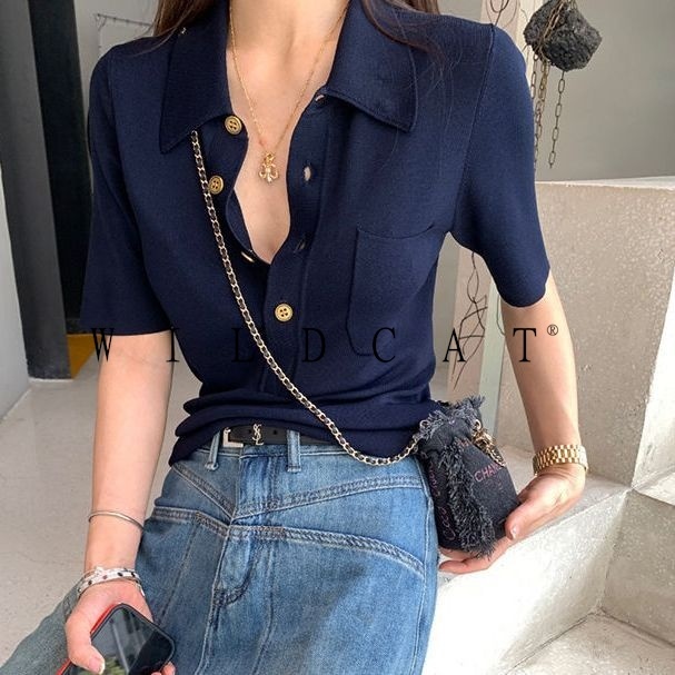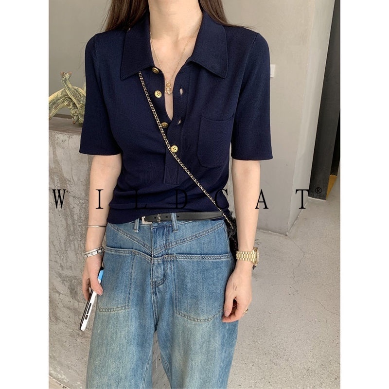เสื้อโปโลแขนสั้น ผ้าถัก เข้ากับทุกการแต่งกาย แฟชั่นฤดูร้อน สําหรับผู้หญิง