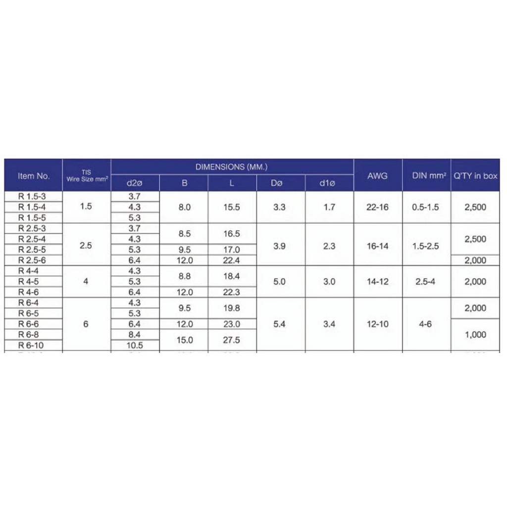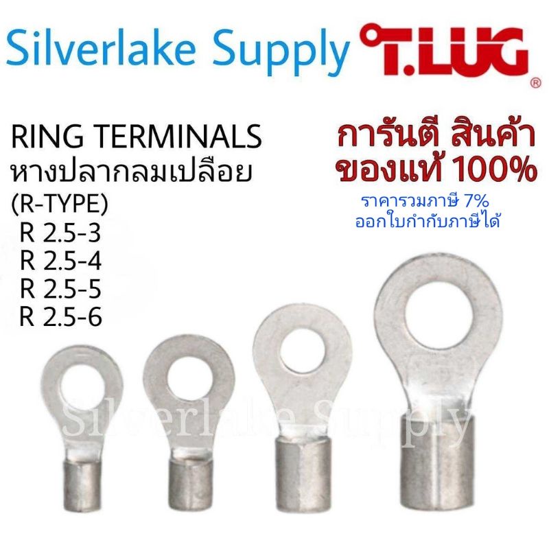 Tlug หางปลากลมเปลือย เบอร์ 2.5 100ตัว/แพ็ค R2.5-3 / R2.5-4 / R2.5-5 / R2.5-6