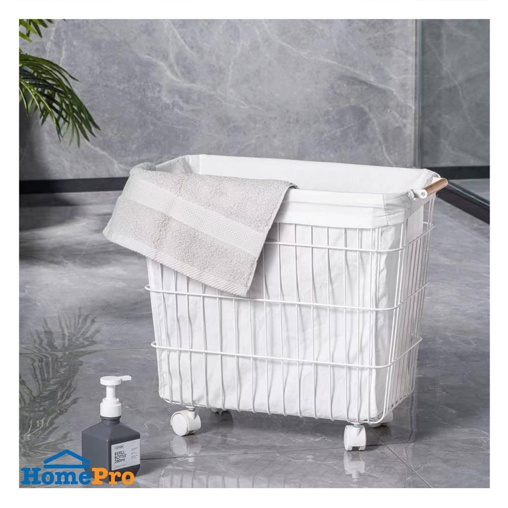 PLIM ตะกร้าผ้าเหลี่ยมมีล้อ KATE สีขาว จัดส่งโดย HomePro