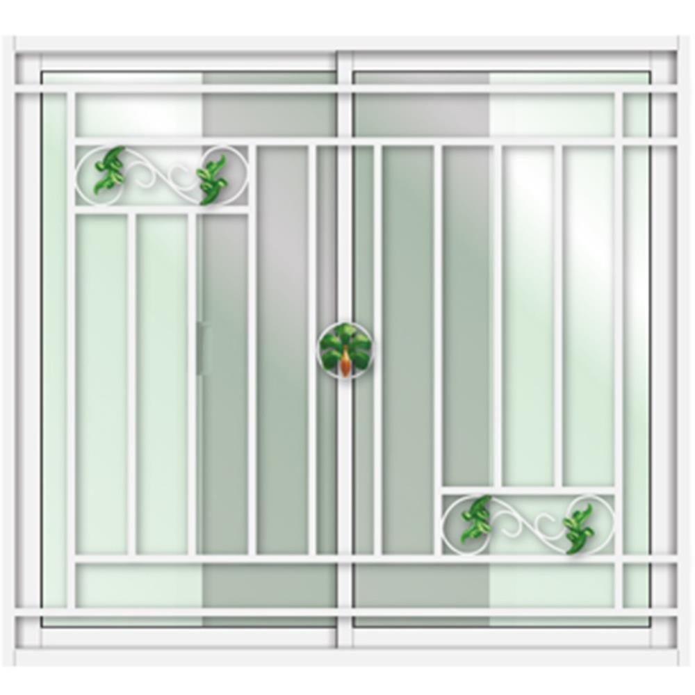 LYNN หน้าต่างบานเลื่อน อะลูมิเนียม S-S เหล็กดัด มุ้ง ลายใบไม้เรียกทรัพย์ 120X110 ซม. สีขาว จัดส่งโดย HomePro