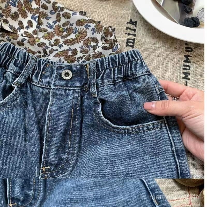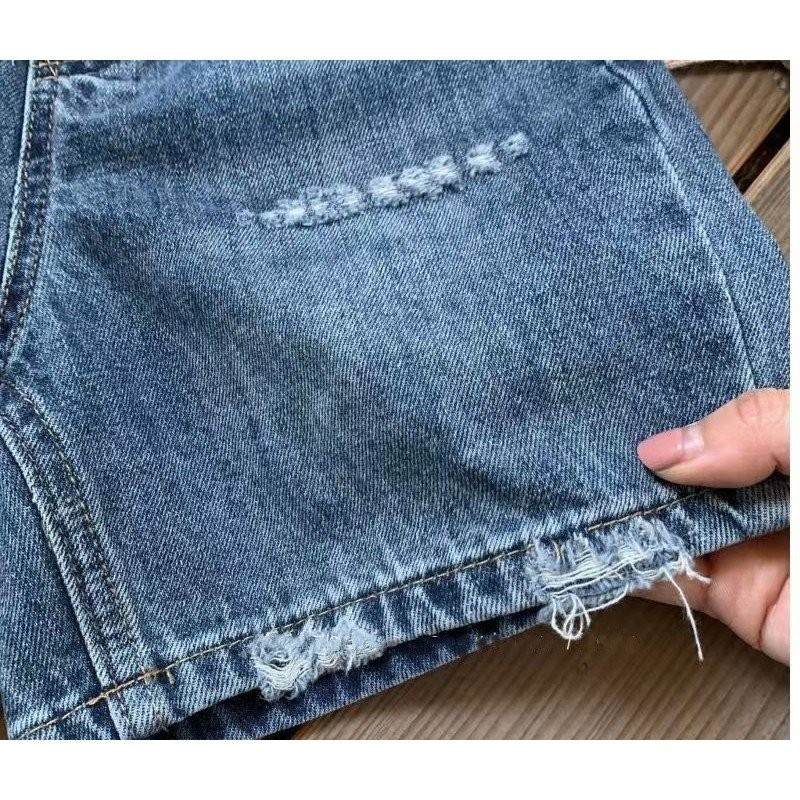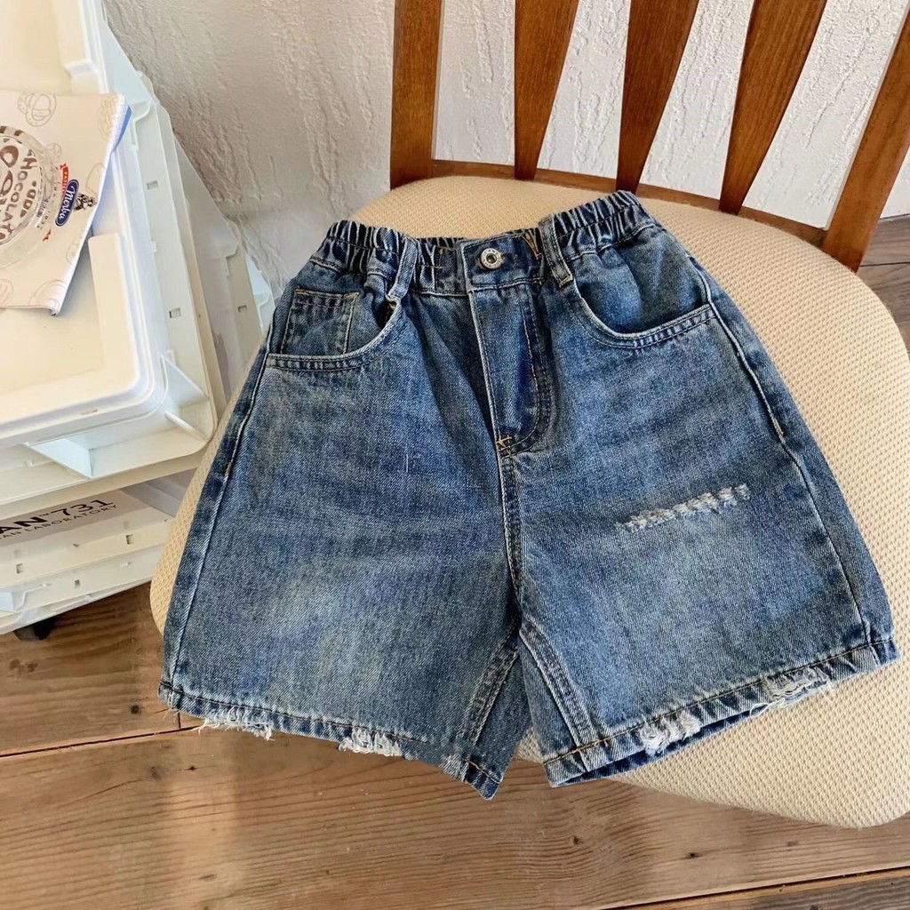 กางเกงขาสั้นผ้ายีนส์สำหรับเด็กกางเกงขาสั้นทองแดงขาดสำหรับเด็กชายและเด็กหญิงในช่วงฤดูร้อน
